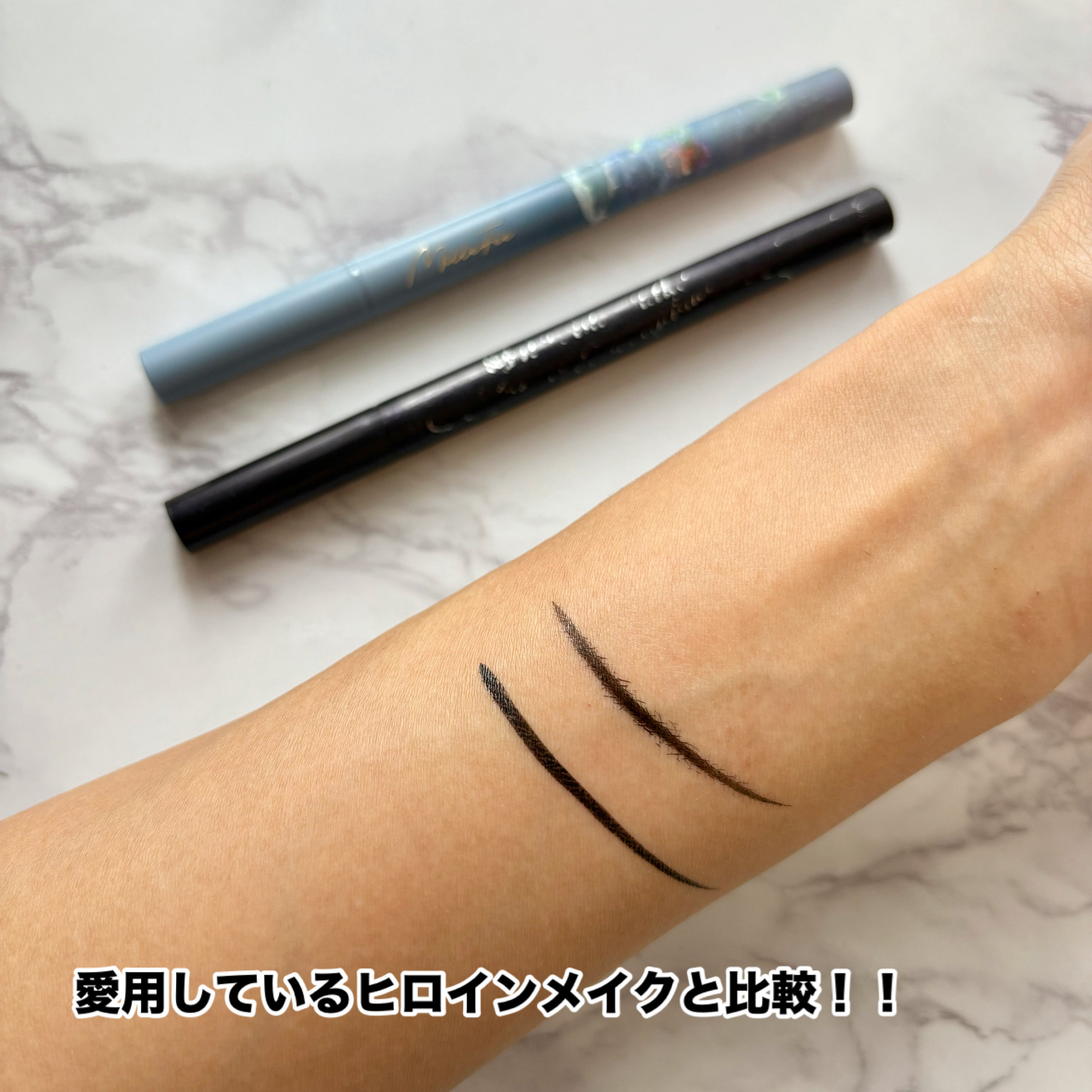 #LIPSベスコスを語りますLIPS上半期新作ベストコスメ2025『新作賞アイライナー部門』2位🥈MilleFéeミルフィー絵画リキッドアイライナー01ブラック 湖面のような静けさをたたえた漆黒ブラック¥1,430(税込)絵画みたいなパケがオシャレだしかわいい!!絵のところがボコボコな立体仕様になってる✨そもそもライナーは真っ黒が好きなのでヒロインメイクに勝てるものはないと思ってるけどランキングに入っていたので買ってみた!!だいたいどこも0.01mmの極細!とか書いてあるけど、いろんなライナー使ってきましたが1番細い気がする!わたしの愛用してるラブライナーと比べてみました!!色はどうしても薄い笑わたしの腕のシワの隙間に入って滲んでるように見えるけど、目に描いたらそうでもないです!結局ヒロインメイクでいいかも!って感じです!✂︎ーーーーーーーーーキリトリ線ーーーーーーーーーー【公式説明】✔️0.01mm極細✖︎短めの筆で狙い通りのラインを✔️なめらかな描き心地 繊細なラインを思いのままになめらかに液体が出て、かすれずしっかり発色し色ムラになりにくい✔️こすれに強く、にじみにくい 水・汗・皮脂・こすれに強い、ウォータープルーフ仕様。速乾タイプで、目元の美しいラインをしっかりキープ。#millfee#ミルフィー#アイライナー