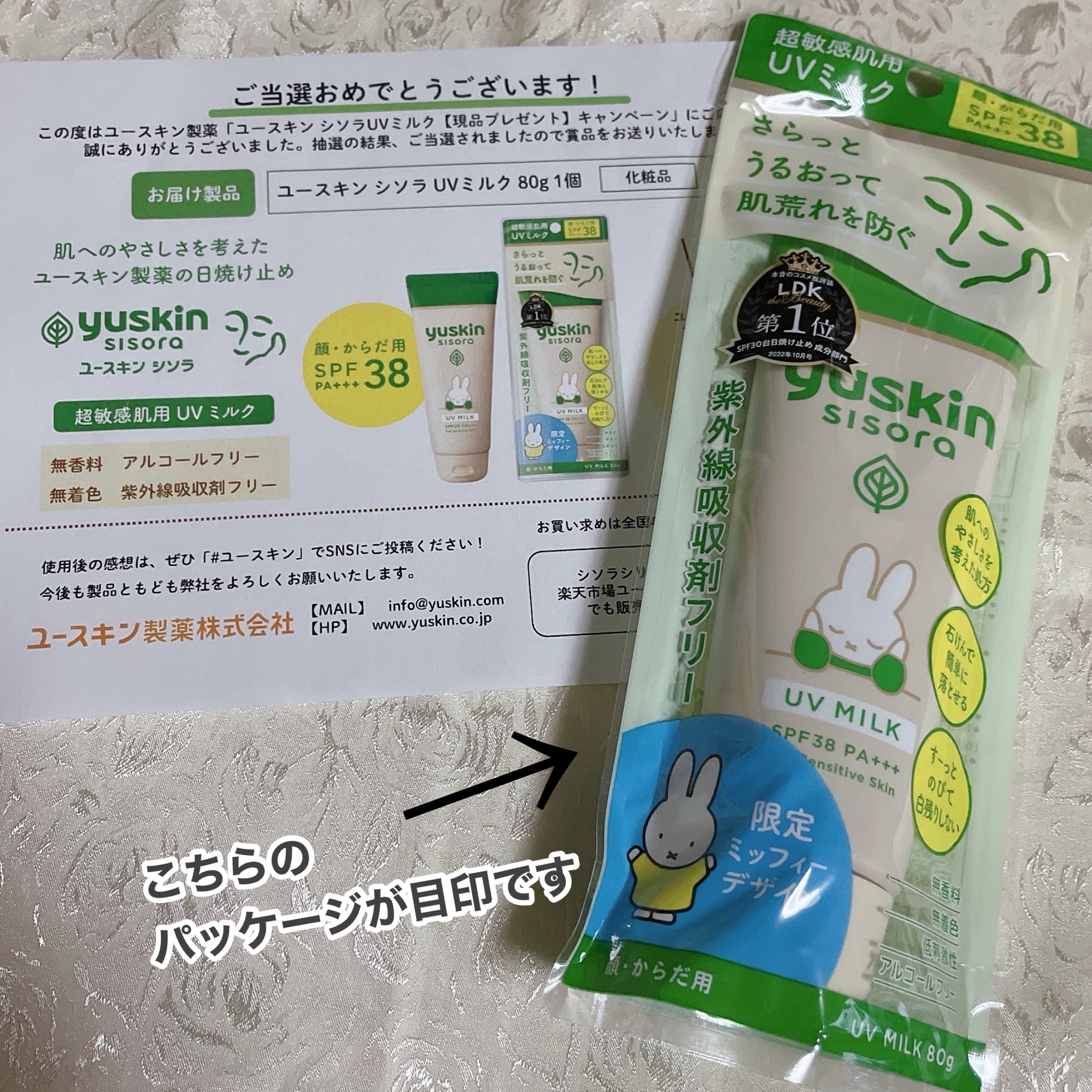 敏感肌にめちゃいいです!(๑•̀ㅁ•́ฅ✨顎にニキビできまくりの敏感肌だったのですが、これはあまり刺激がなくてニキビ悪化しなくてよきです♡🙆♀️ミッフィーちゃんかわいいし(・×・)化粧下地にも!ユースキンユースキンシソラUVミルク80g¥1...