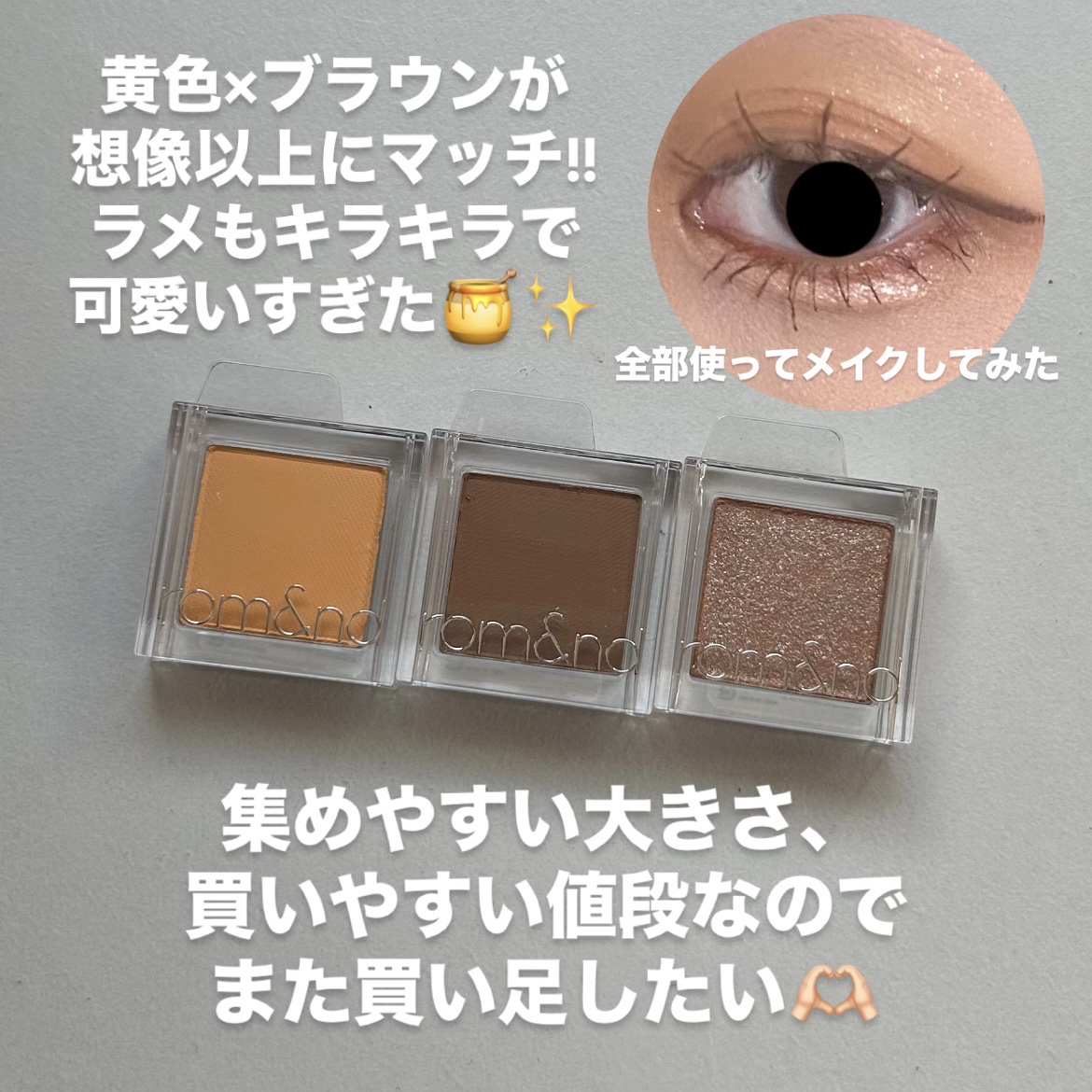 rom&ndのスライドインシングルカスタムして自分だけのパレットを作れるのがお気に入り✨M01番はシングルで使用していていっちばんのオススメ!!私はマットハイライトとして使用しています!これ一つで全然違って見えるのでほんとおすすめです!!他の...