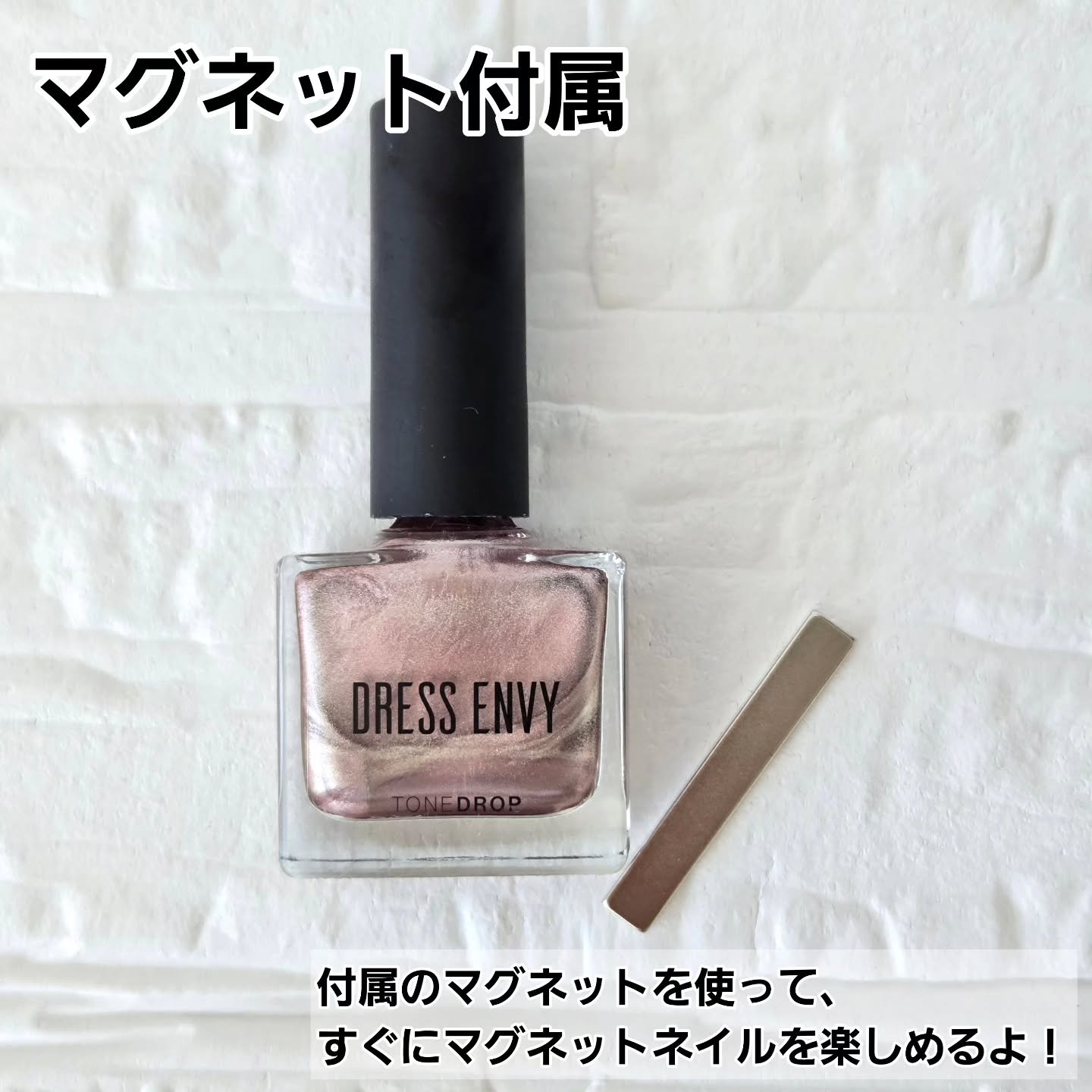 トーンドロップのマグネットシリーズ第3弾は"サテンマグ"✨サテンのようななめらかな質感を再現したような光沢感が美しい✨✨┈┈┈┈┈┈┈❁❁❁┈┈┈┈┈┈┈┈TONEDROP045DressEnvy046IceVeil047Majesty048RoyalCat各1,650円(税込)┈┈┈┈┈┈┈❁❁❁┈┈┈┈┈┈┈┈柔らかなローズカラーに透明感のある澄んだブルー、高級感溢れるゴールドにミステリアスなグリーン…どれもとってもおしゃれなんだよー!マグネットネイルだから、マグのデザインで遊べるのも楽しい♫速乾性の高いポリッシュだから、マグを動かすのは手早くね!塗る前にしっかり混ぜて厚めにぬるとマグが反応しやすくなって使いやすいよ。私は1度目はベタ塗り、2度目でマグネットのデザインを作ってます🙋🏻♀今回はキャッツアイにしたけど、今度真ん中にマグを集めてちゅるんとしたデザインもやってみたいなー♡#PR#ディーアップ#トーンドロップ#ネイル#ネイルポリッシュ#マグネットネイル#マニキュア#セルフネイル#ネイル好き#コスメ好き