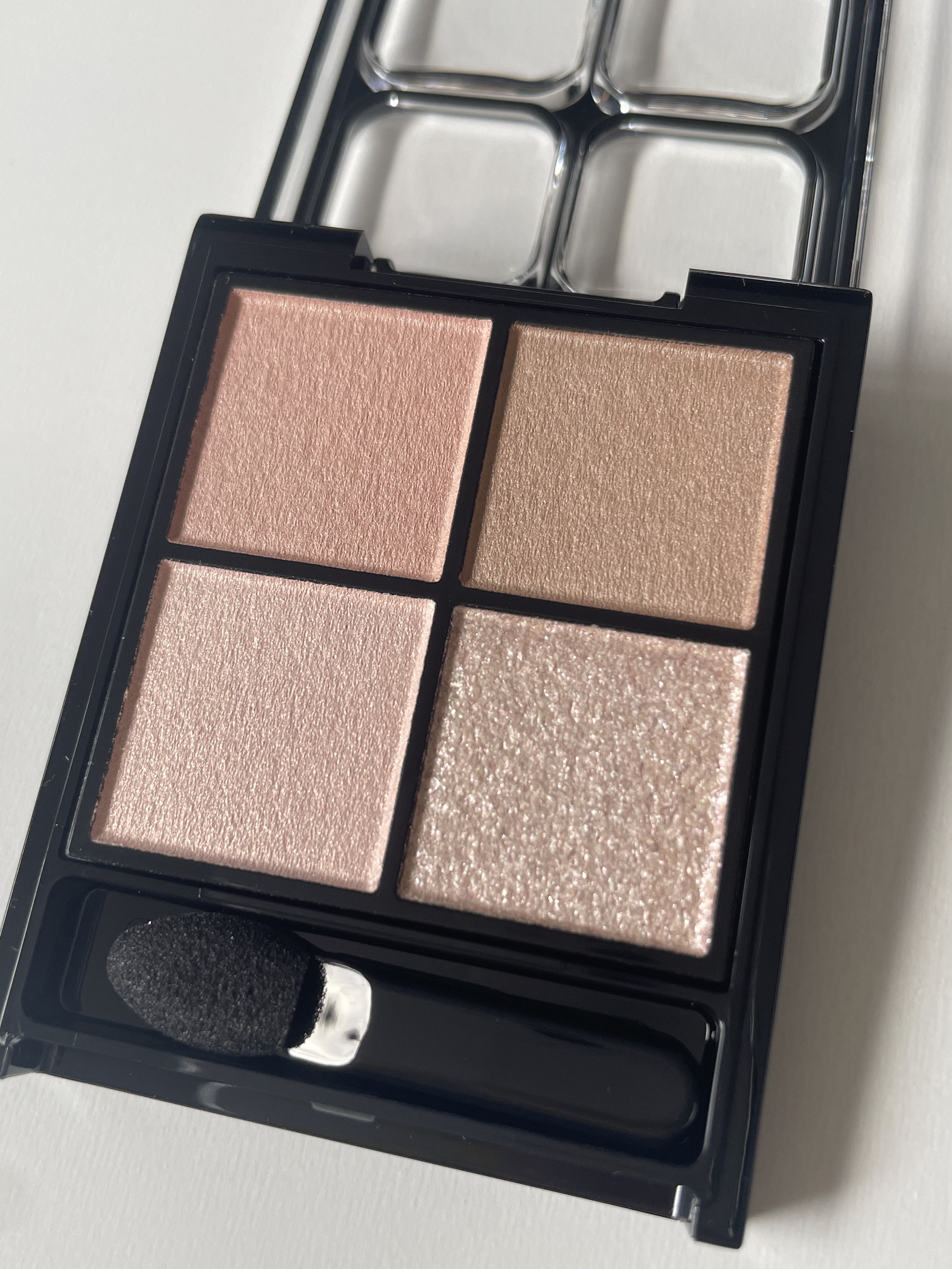 色味が好みで購入しましたが、思ったより発色が弱くて結構ガッツリ塗らなきゃ満足できません。左下のラメはかわいいですが落ちやすく、手持ちのキャンメイクの8色パレットの似た粉質のものの方が優秀だなと思いました。部分的になら使えるかなくらいの使用感です。
