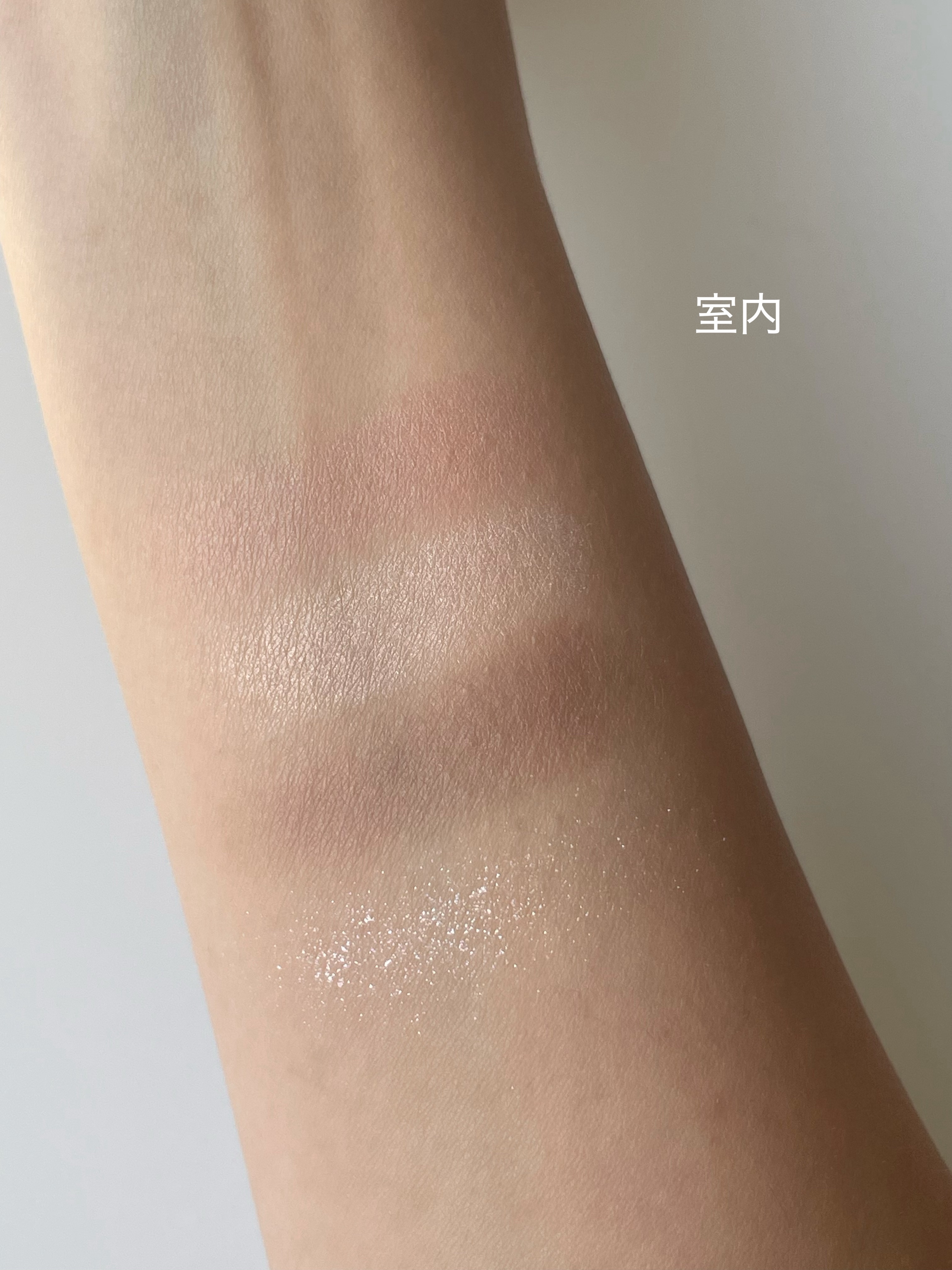 - タルク、ジエチルヘキサン酸ネオペンチルグリコール、リンゴ酸ジイソステアリル、ジメチコン、ワセリン、シリカ、ミリスチン酸亜鉛、カルナウバロウ、ジステアリン酸Al、セスキイソステアリン酸ソルビタン、トコフェロール、クロルフェネシン、デヒドロ酢酸Na、(+/-)マイカ、ホウケイ酸(Ca/Al)、酸化チタン、アルミナ、酸化鉄、グンジョウ、酸化スズ、水酸化Al