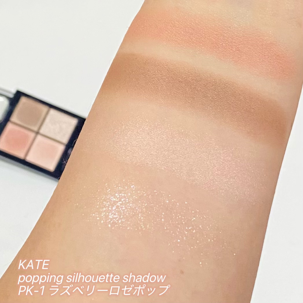 ケイトポッピングシルエットシャドウ🤍PK-1ラズベリーロゼポップ質感の違いで立体感がだせるケイトのポッピングシルエットシャドウ!!ついに購入!!たしかに全色淡めのカラーなのに、つけるとちゃんと陰影がついて盛れる!!全色必要でそのバランスが大事...
