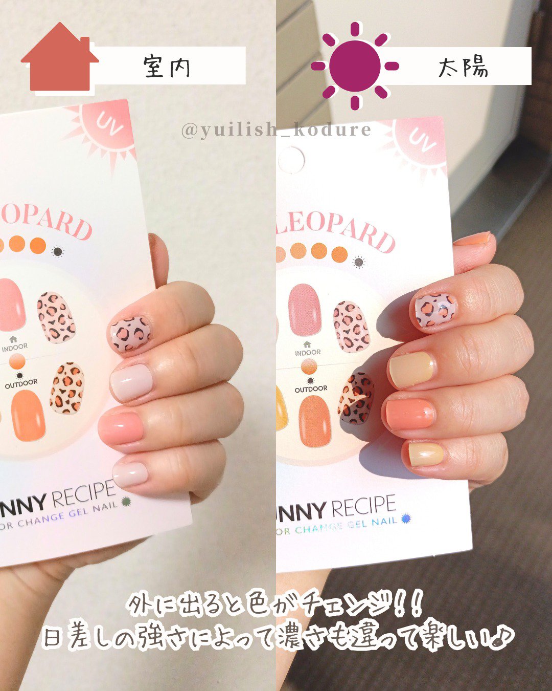 太陽の光でカラーが変わるジェルネイルシール!?見た目の可愛さとカラーチェンジに惹かれてお試ししました。屋内外、紫外線の強さによって色味が変わるのが想像以上に楽しくて、ついつい指先に視線が向いちゃいます。私が使用したピンクレオパードは太陽光でピ...