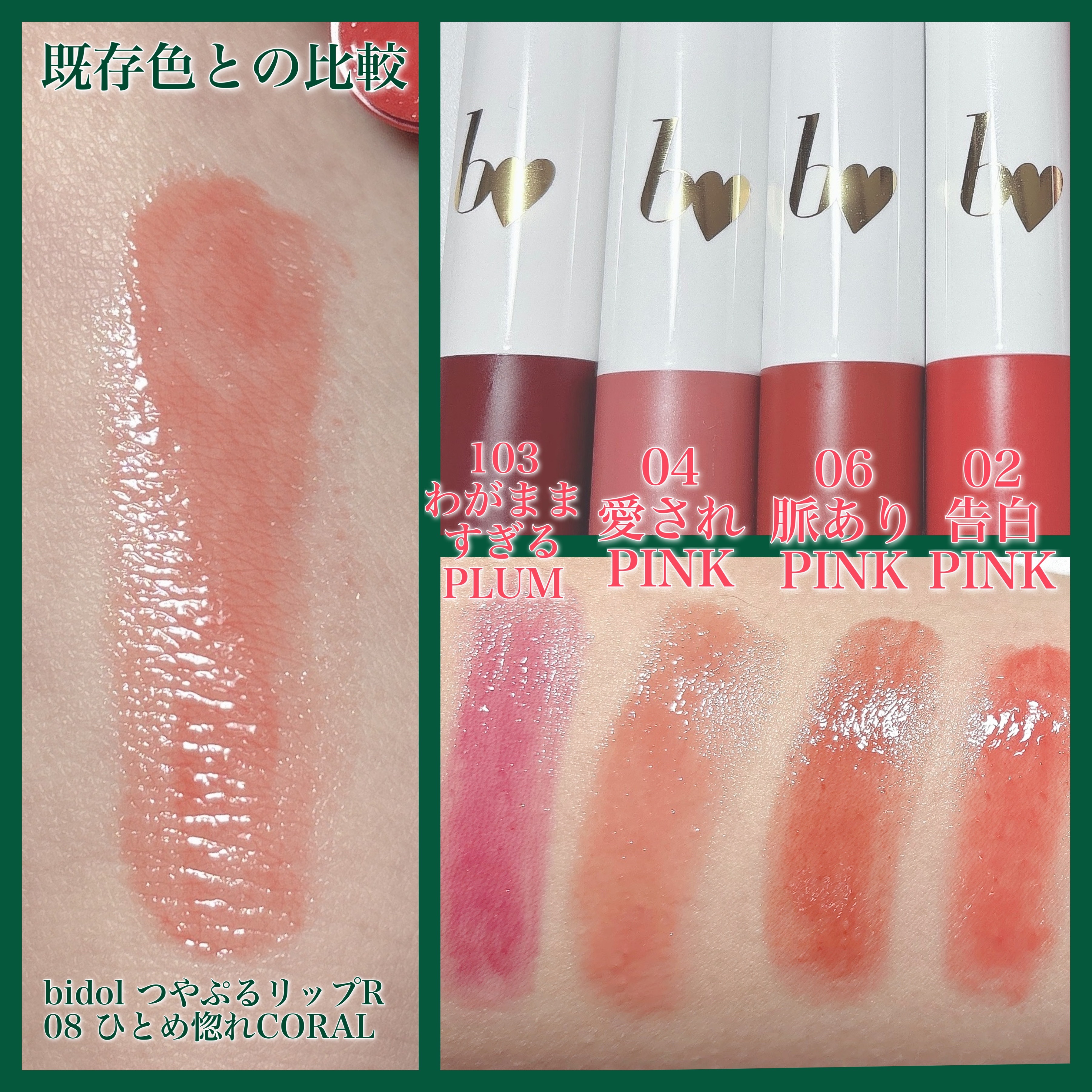 bidolつやぷるリップRに春にぴったりの新色が登場🌷既存色と比較しながらレビューしました!✼••┈┈••✼••┈┈••✼••┈┈••✼••┈┈••✼【使った商品】bidolつやぷるリップR08ひとめ惚れCORAL (税込¥1,540)【色味...