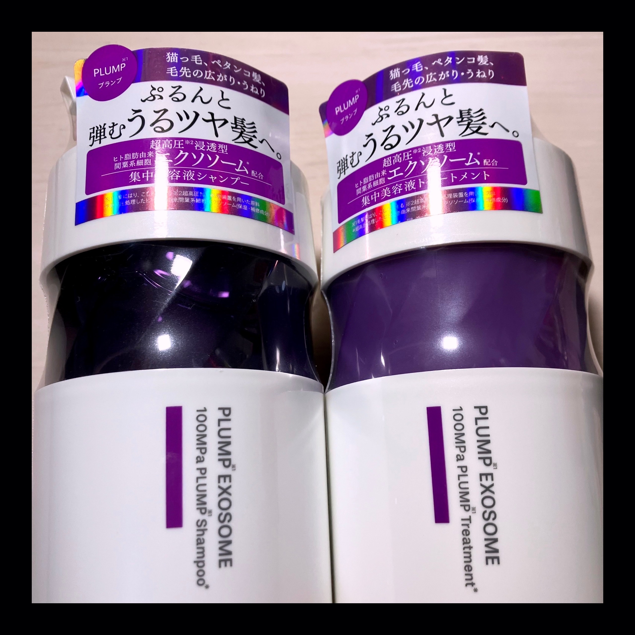 超高圧浸透型プランプエクソソーム配合の集中美容液シャンプーとトリートメント。 猫っ毛、ペタンコ髪、毛先の広がり・うねりに集中アプローチ。 髪がしっとりまとまりが良かったです😊
