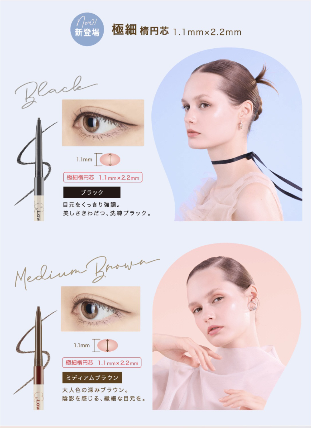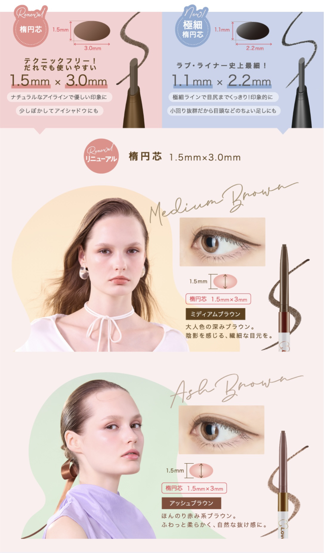 \LoveLiner/2025年3月にLoveLinerから1.1mm×2.2mmの極細楕円芯アイライナーが新発売!こだわりの楕円芯はそのまま、芯の細さとクリーミィな描き心地の両立を追求してブランド史上最細である1.1mm×2.2mmの極細楕...