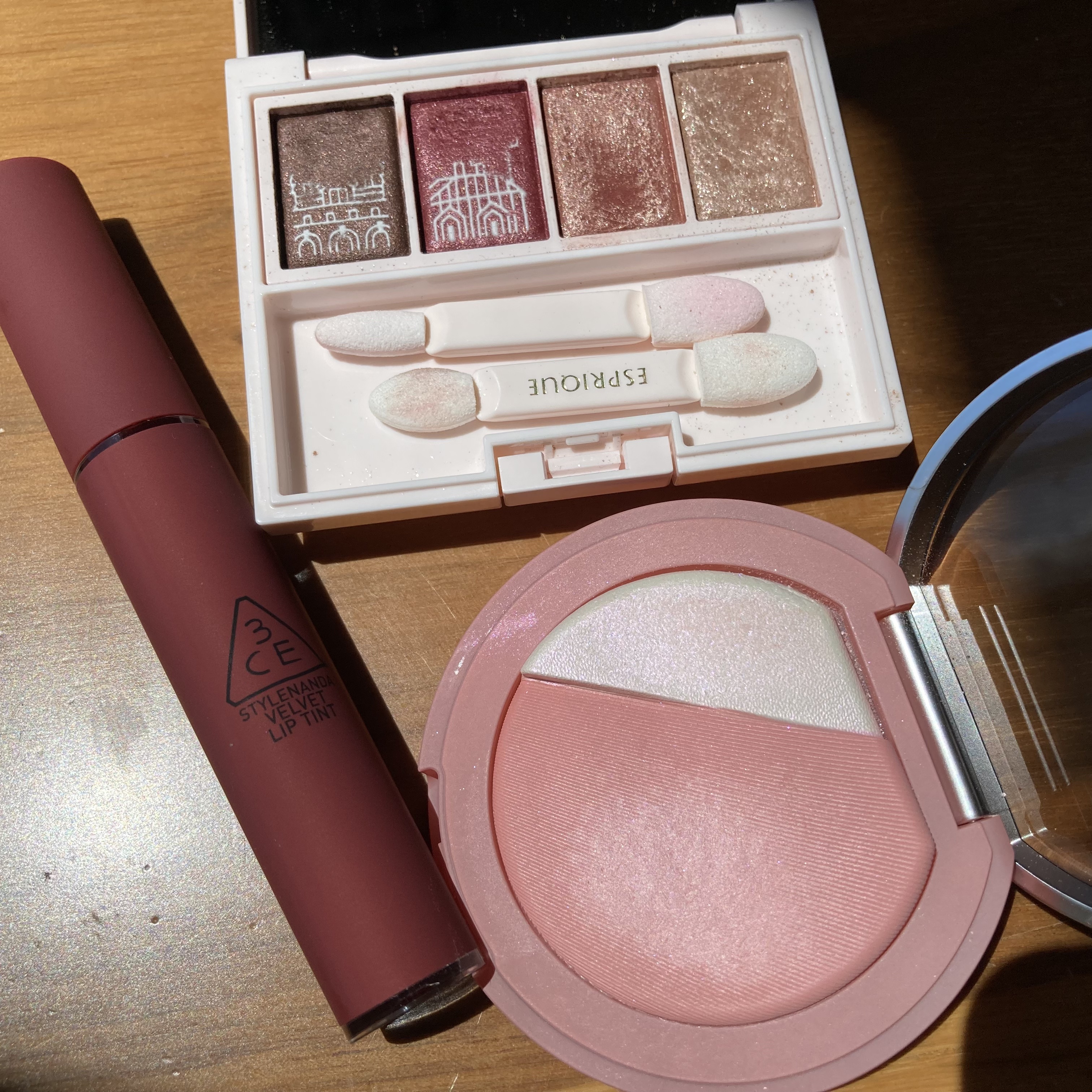 これ1つあれば韓国アイドルみたいなほっぺになれちゃうの、凄くない? ハイライトは普通の粉だしテクスチャーがむにむにとかではないんだけど、濡れ感を感じるような質感で粒子自体が細かい感じではなくちゃんとラメと分かるような仕上がり。 チークは最初結構固めなテクスチャーだなって思ったんだけど、使っていくうちに表面がなめらかになってきて粉質が柔らかくなった。