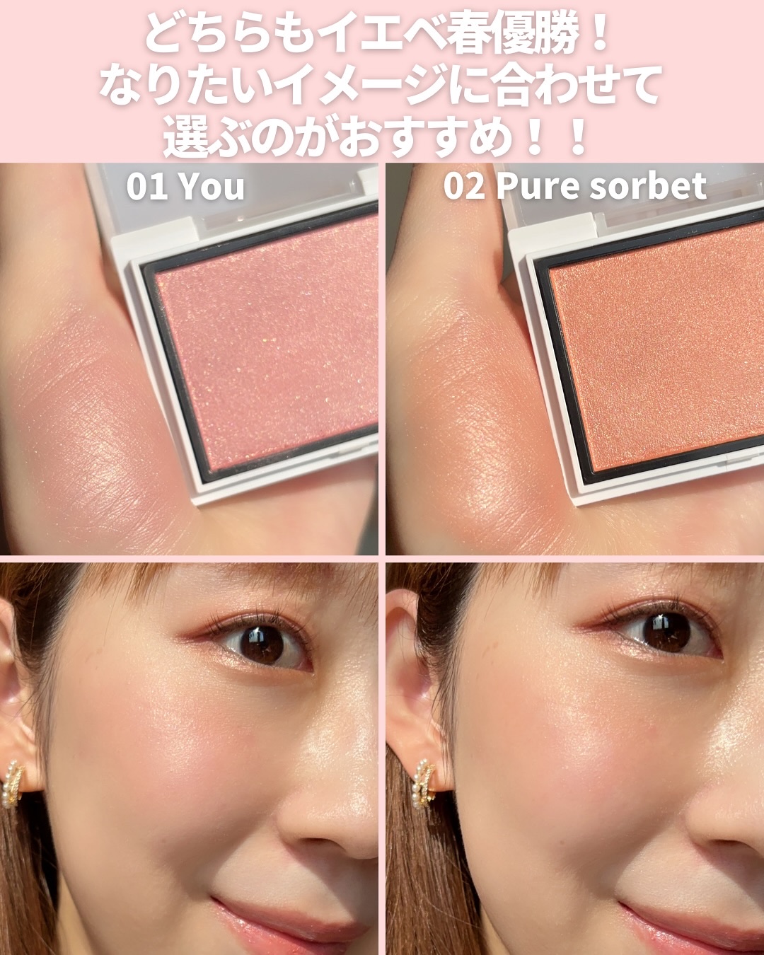春コスメ購入品🌸2025年3月25日発売のエナモルのチークを購入しました♪艶チークに目がないので、パウダーなのにリキッドのような生っぽさがでると聞いてそんなの最高じゃん…!と発売を楽しみにしてた〜♡01You02Puresorbet06Ete...