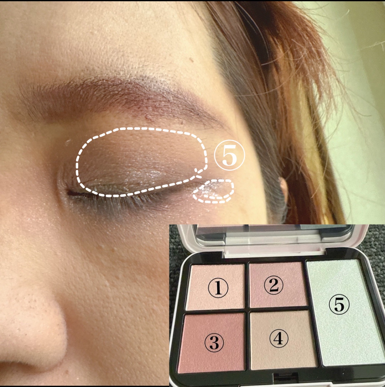 SNIDELフェイススタイリストnEX01(アイカラー•ハイライト)価格:6600円(税込)①を上瞼と下瞼に塗る。②を上瞼の目を開けたらちょっと見えるくらいまで塗る。④を二重幅まで塗る。③を目尻に内側にぼかすように塗る。③をした目尻のまつ毛際...