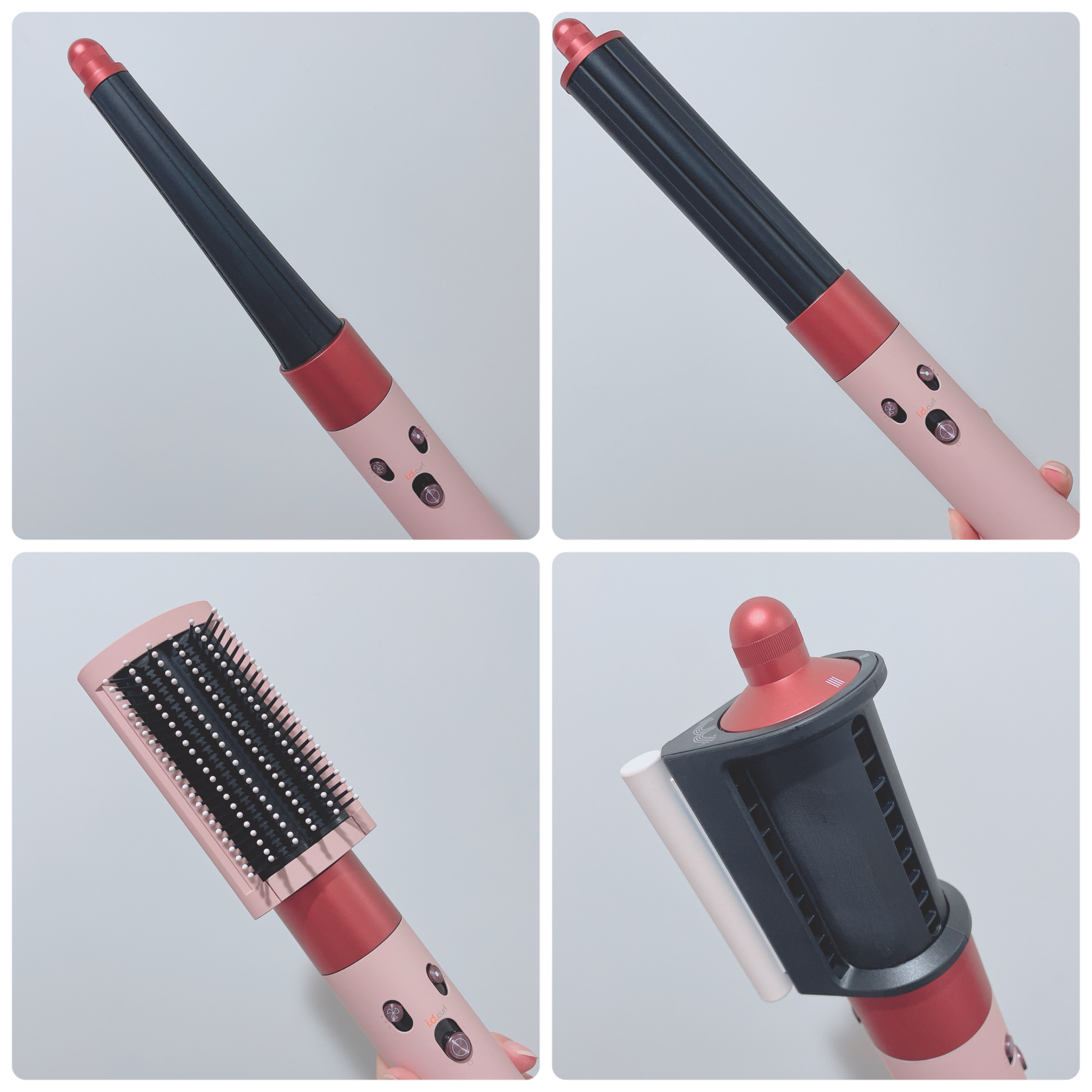 大人ピンクのこの色味はさくらチェリーという色 とっても可愛いですよね アタッチメントが4つ ・40mm Airwrap™カーラー 大きめカールが自由自在 髪質や長さ・スタイリング技術のレベルを設定することで 巻きつけからカール設定、クーリングまでが自動設定されるの