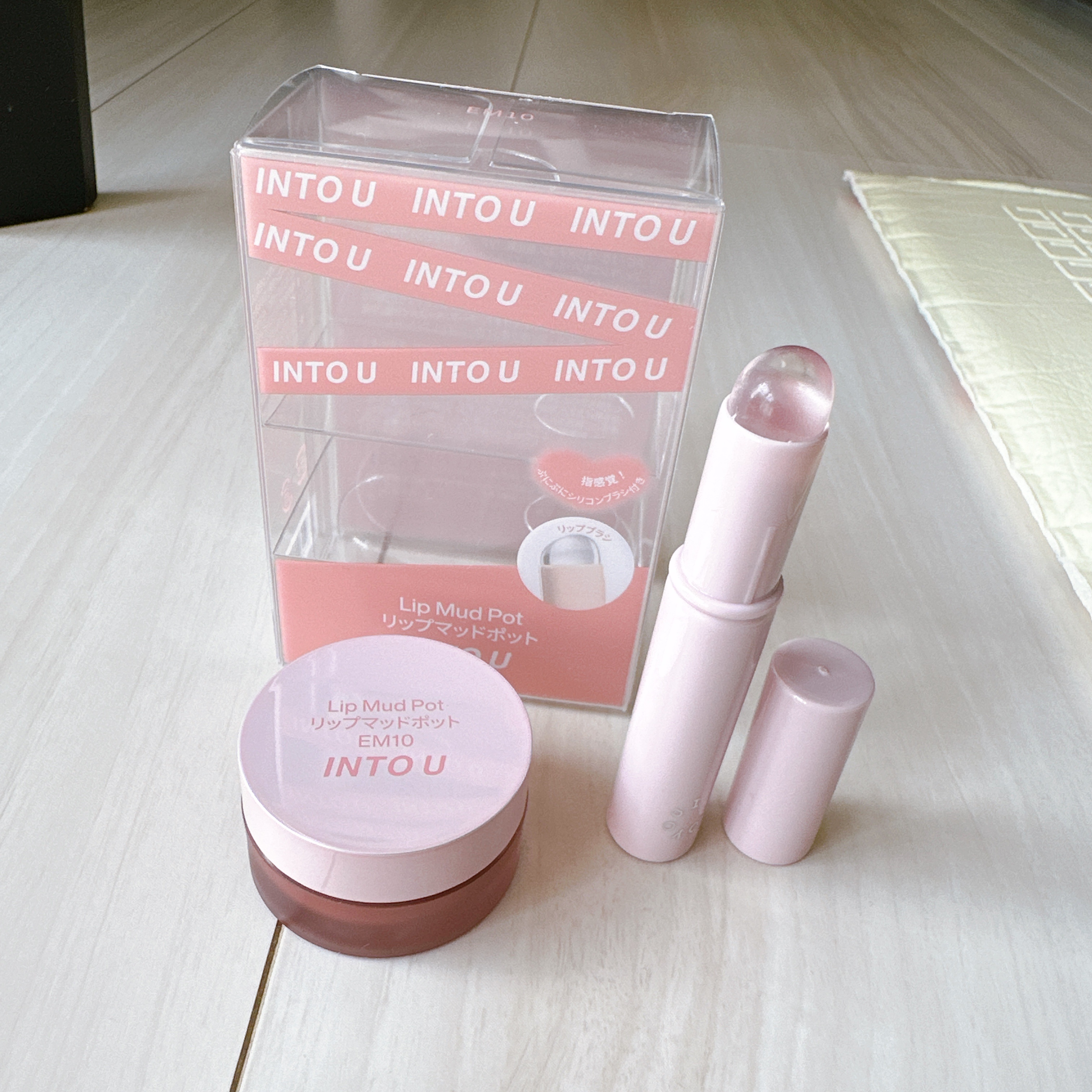 INTO Uのリップ好きで、このEM10のカラーは普通の泥リップの方を買って持ってます🤭 こちらはポットタイプになってて珍しい!👀 本体のテクスチャーもぷにぷになんだけど、シリコンブラシもぷにぷにで気持ちいい✨🤭 「ピーチポップ」と「アイスベリー」は「リップマッドポット」で登場した新色らしい! ピタッとつくので持ちも良く感じたよ👍