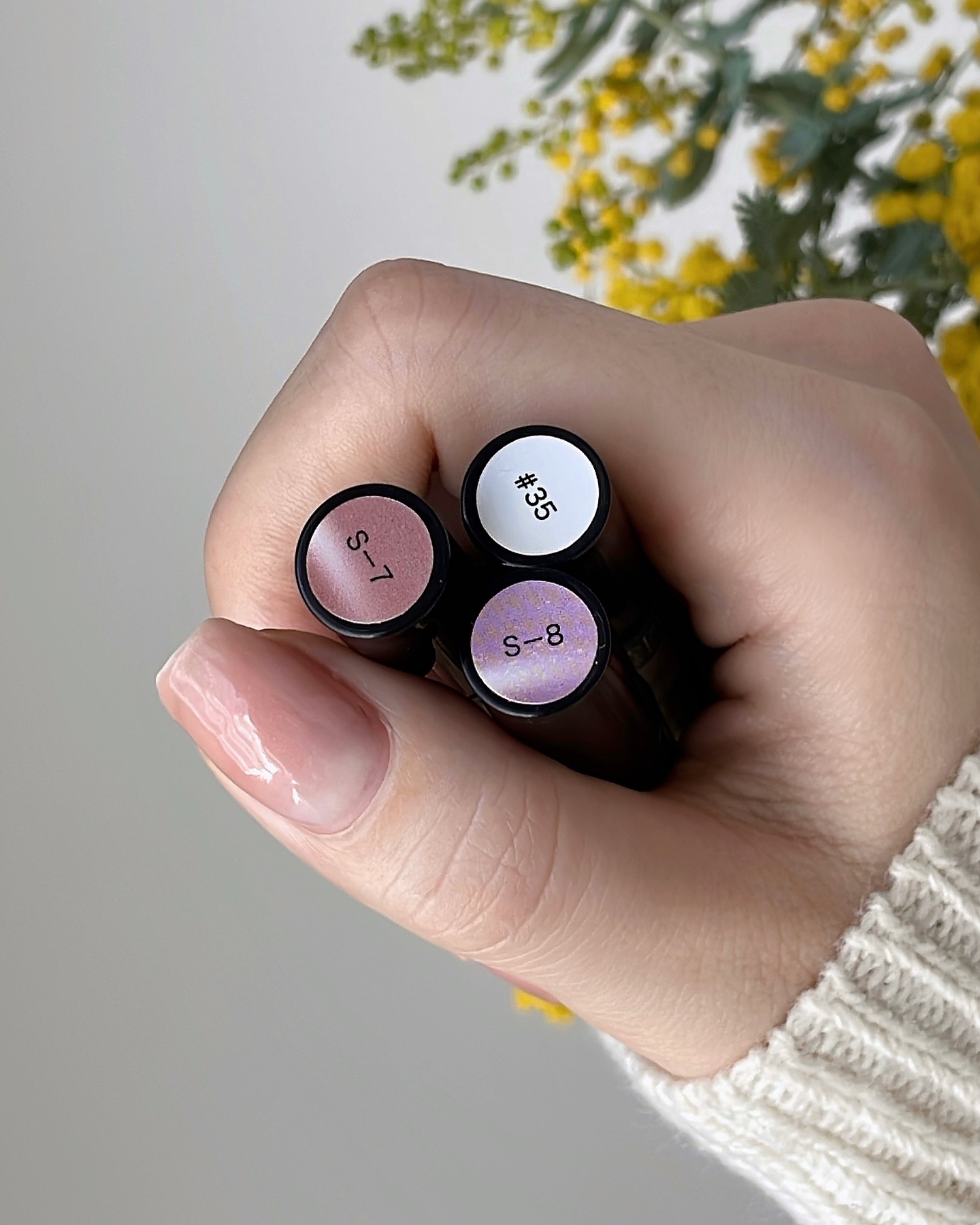 左【S-7ストロベリーホイップ】右【S-8あじさいキャンディ】はがせるタイプのジェルネイル💅🏻パティスリーに並ぶケーキをイメージしたSweetsCollectionから春の限定カラー2色が3/7に発売されました!【S-7ストロベリーホイップ】・いちごとクリームの甘酸っぱいケーキをイメージしたピンクラメカラーとのことで、ベリーの赤みがホイップによってマイルドに仕上げられているようなカラーで、普段使いもできる肌なじみの良さが🫶🏻・細かいゴールドのラメが入っていて角度によって上品な煌めきを感じられます✨【S-8あじさいキャンディ】・あじさいのようなくすみパープルにゴールドのラメを散りばめた上品なカラーとのことで、塗る量によっては画像(薄く2度塗り)のように透け感のあるキャンディーのような仕上がりに🍬・単色でも重ね塗りでも楽しめそう🫶🏻・ラメはどの角度からでもわかる存在感のある大きさと量でした✨#桜色の春ネイル