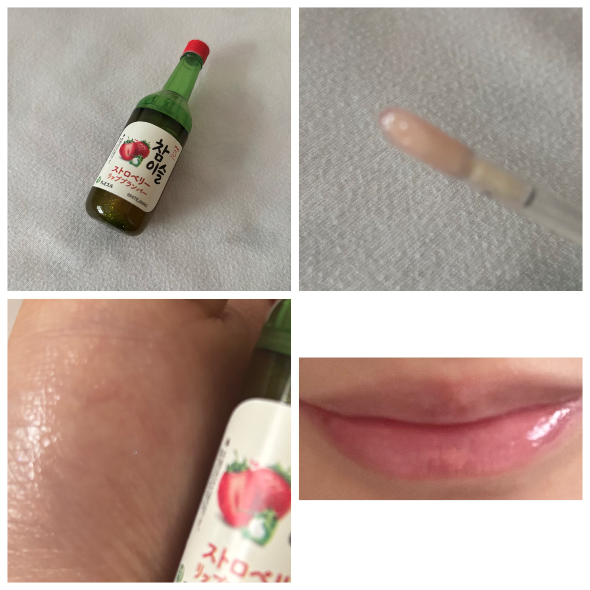 お久しぶりです。今回は、ドンキで売っていたチャミスルリッププランパーを紹介します。お値段一つ1320円。チャミスルの瓶の形におびき寄せられてまんまと全色購入してしまいました。私自身、リッププランパーを購入するのはかなーり久々です。初めて購入したのは10年ぐらい前、キャンメイクから出ていたボリュームアップレディグロスを購入して塗ってた記憶があります。今回のチャミスルリッププランパーの色展開は、フレッシュ、マスカット、ストロベリー、すもも、グレープフルーツの5色です。ヒリヒリ度合いもそれぞれ違うのでそれぞれ紹介していきます。まずは、フレッシュからこちらはホットレベル🌶️✖︎5、シリーズ史上マックスレベルとなっております。匂いは特になし、ラメなし、色なしのクリアタイプです。早速塗ってみました。塗って最初の方は痛いというより痒いと言った感じが続き、2分くらい経った頃に本領を発揮してきました。痛いというよりは、強い不快感がある。痒み?に似たような何かをつよーく感じました。耐えきれなくなってすぐメイク落としで落としました。次にマスカットこちらはホットレベル🌶️✖︎3フレッシュ以外のホットレベルは全て🌶️✖︎3のレベルで統一されています。匂いはマスカットの良い香りがします。色は緑色のラメが入ったクリアタイプです。塗ってみましたが、プランパーの中に入っているラメは申し訳程度にしか付きません、、、。手に塗ってもマジでわかりませんでした。子供用コスメのグロスみたいな感じです。プランパー効果はというと、フレッシュと比べたら自分としてはだいぶマシ、不快感はちょっとあるけど耐えられるレベルでした。これならまだ大丈夫かなと思えました。次はストロベリーこちらのホットレベルはマスカット同様となっています。匂いはストロベリーの良い香りがします。色は赤のラメが入ったクリアタイプです。こちらも唇に塗ってみたところ、申し訳程度にしかラメはつきません。こちらも手に塗ってもわかりませんでした。プランパー効果はマスカットと同様です。次はグレープフルーツこちらもホットレベルはマスカット同様となっています。匂いはグレープフルーツの良い香りがします。こちらも、色は赤いラメが入ったクリアタイプの物。正直パッケージの見た目、匂い以外でストロベリーと違うところがないです、、、。最後にすももこちらもホットレベルはマスカット同様です。こちらは色はピンク色でラメは入っていません。最後の最後に変化球を出してきました。匂いに関してなんですが、私自身すももの匂いどころかすもも自体を見たこともないし匂いを嗅いだこともないのですもものいい匂いなのかよくわかりませんが、一つ言えることは良い匂いであるということは言えます。塗ってみましたが申し訳程度にしか発色しませんでした。本当に子供用のリップグロスぐらい発色しません。プランパー効果もマスカット同様です。商品総合です。こちら、コンビニやスーパーで売っているチャミスルの瓶そのものをプランパーの容器として用いていて、蓋の色、ラベル、細部に至るまで普通のチャミスルとなんの遜色もないパッケージでもはや開発陣のチャミスル愛を感じてしまいました。ですが、使用感、チップの部分がかなーり小さくて、唇に塗る際は苦労しました。何度も何度もつけないと唇全体に塗れないんですもん。マスカットなどのラメ入りはラメが全然唇に乗ってくれないし、すももはもはや色がついてるかさえもよくわからない、、、なんなんだこれは、たまげたなぁ。褒められる点としては人差し指ぐらいのサイズなので持ち運びに向いているというところですかね。クリアタイプはプランパー効果すごいのでちっちゃい持ち運び用のプランパー探してる人にはいいかもしれないです。ただ、パッケージに関してはマジでチャミスルそのものなので観賞用には最適です。チャミスルを愛してやまない方にお勧めします。#リッププランパー#チャミスル