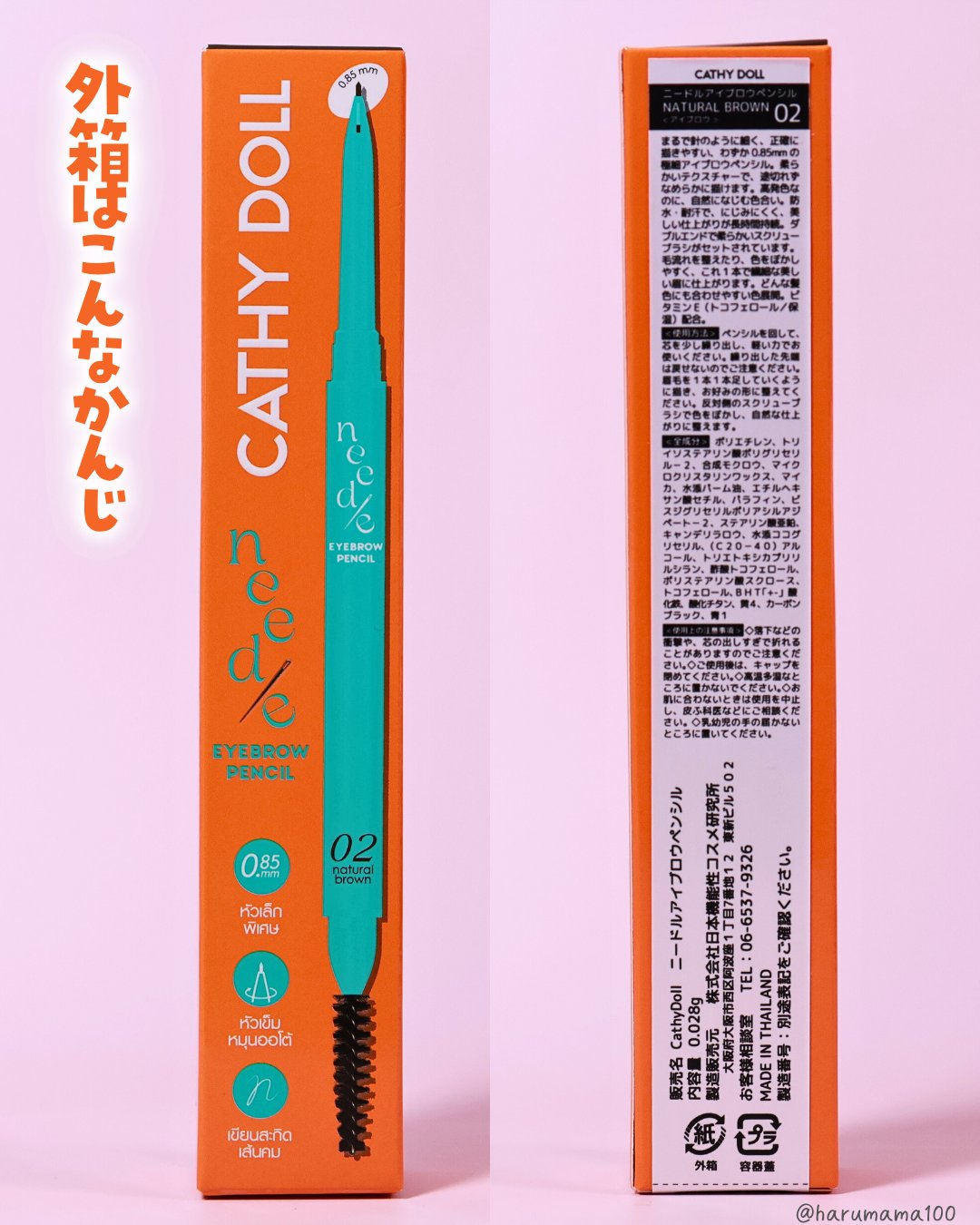【驚きの細さ!0.85mmの眉ペンシル】───────────────CathyDollニードルアイブロウペンシル02NATURALBROWN参考価格660円(税込)───────────────タイコスメの「キャシードール」のアイブロウペンシル!なんと0.85mmの超極細で1本ずつ毛流れが描けるというもの〜🙌リアルな毛流れを表現できるから眉尻や毛のないところの隙間埋めもしやすい◎とくに、細くシャープな眉尻を作れるところが好き♡ただ、すでに毛があるところにつかうとペンシルが削れてベタ塗りになっちゃいがち…。毛に引っかかってペンシルがポキポキ折れちゃうのも残念💦元々しっかり毛があるところには使い勝手がイマイチだったなあ。なので、私は隙間埋め+眉尻を描く専用にしようかなと思う♪今回使った「02NATURALBROWN」のカラーは自然な明るさのブラウンだよ!ぜひチェックしてみてね〜💕───────────────#コスメ購入品#내돈내산#CathyDoll#キャシードール#タイコスメ#アイメイク#アイブロウ#アイブロウペンシル#プチプラ#eyebrow#垢抜けメイク#暑さを乗り切る夏美容