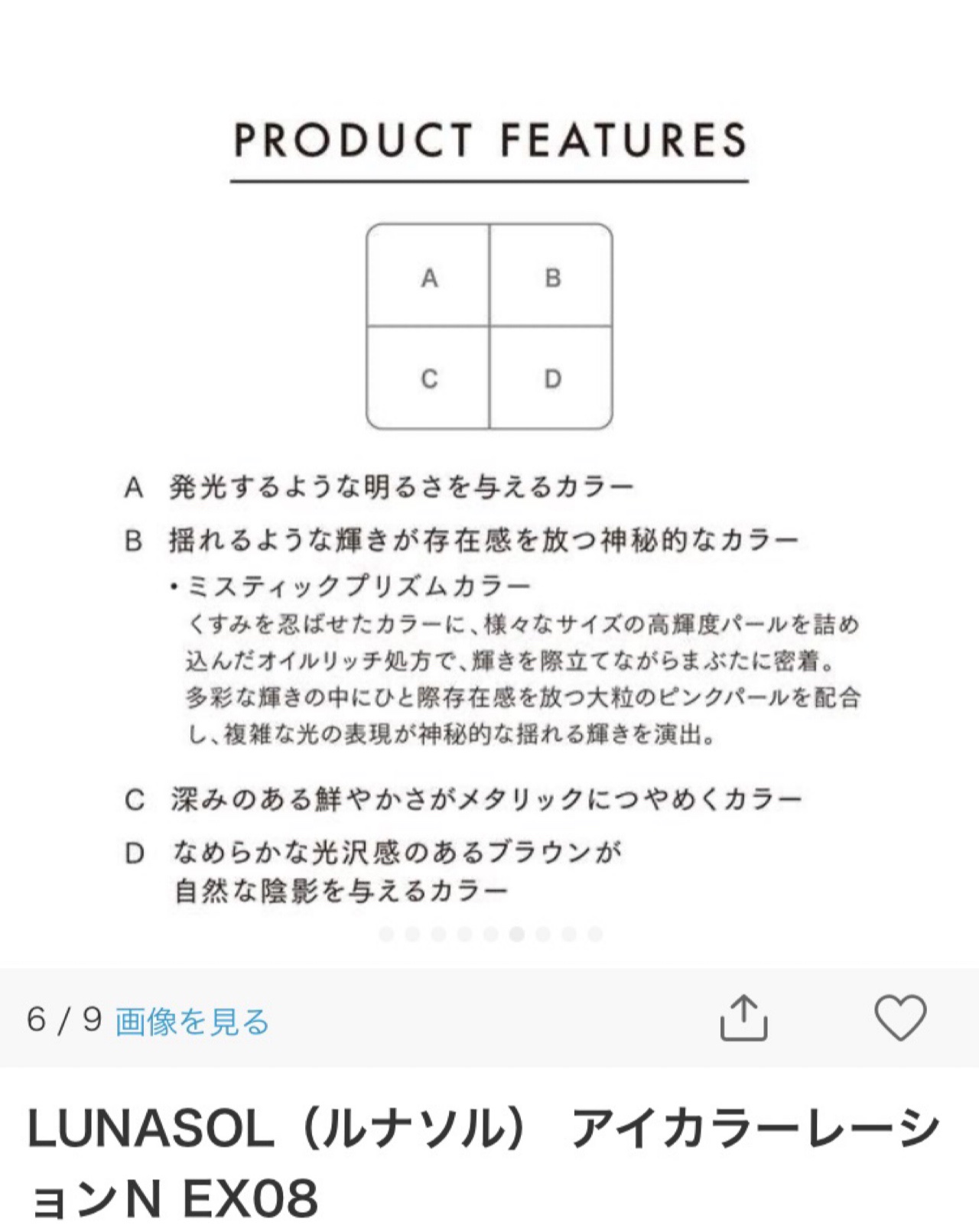 LUNASOLルナソルアイカラーレーションNEX08 AlluringFeather¥7,700普段絶対選ばないような苦手カラーモノアイカラーレーションのオレンジ目当てで店頭へついでにこちらを触ったら感動してしまったんだ全色ラメ!左上は白かと...