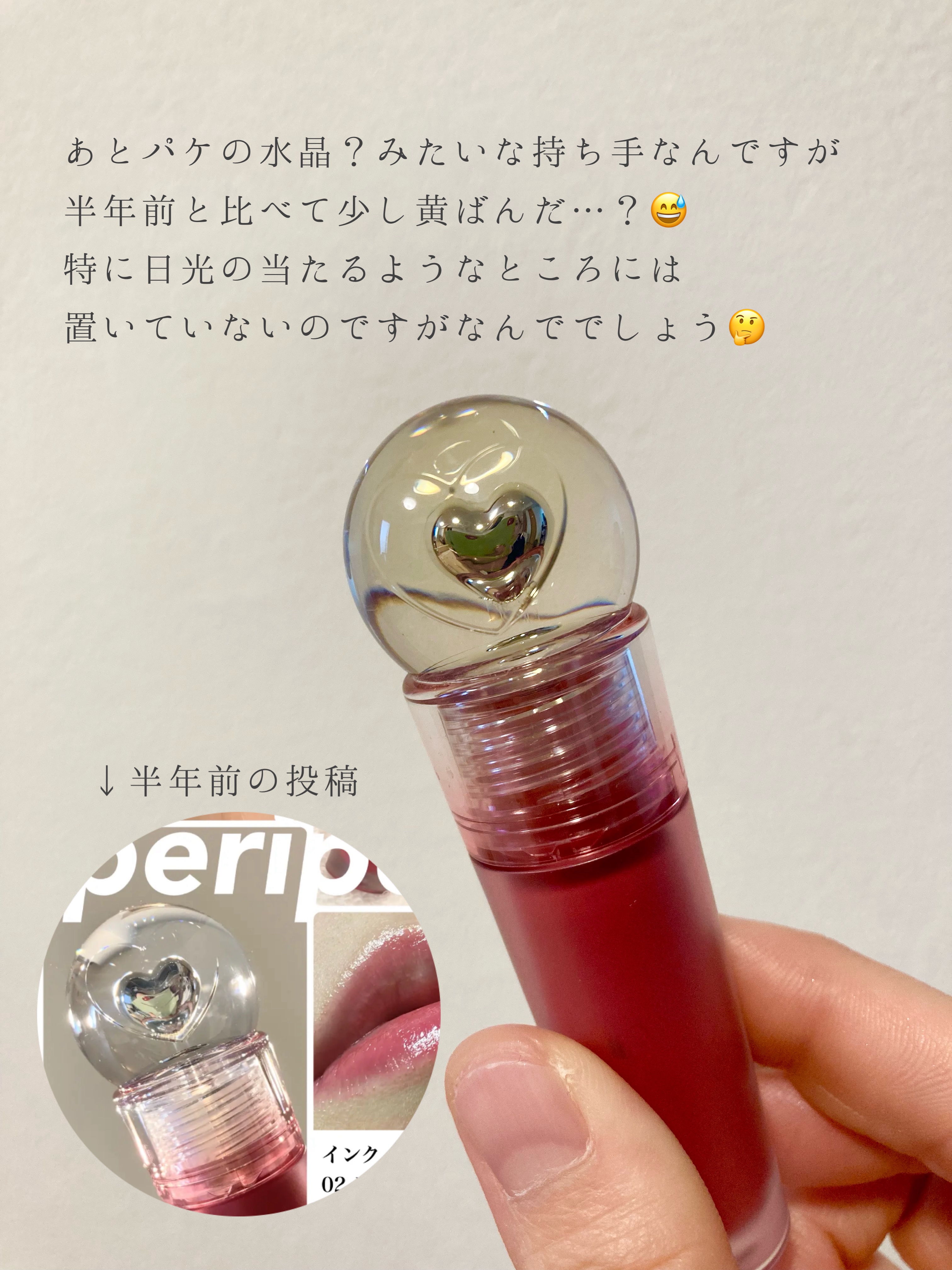 \\ちょっと待って!!超お気に入りだったのに変色してしまった…😂//PERIPERAのインクジェラブルティント02ピンクディファレンスペンラリップとしてバズってましたが、変色してしまった。中身ではなくペンライト部分が。パケが可愛いので見せる収...