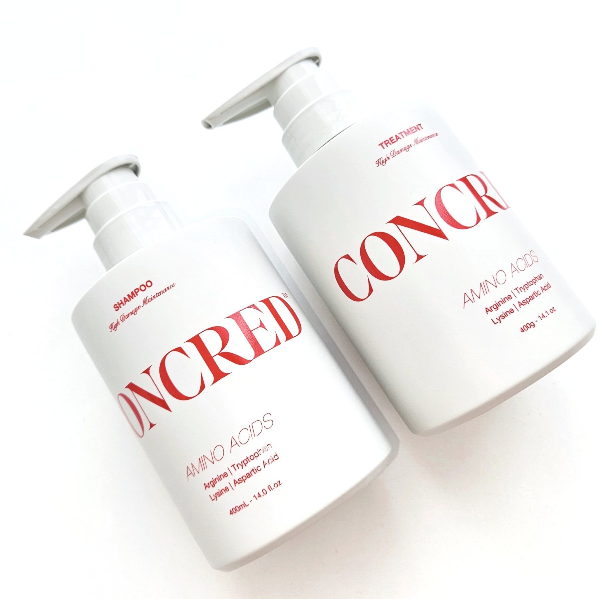 【CONCREDハイダメージメンテナンス高濃度トリートメント】パーマやカラーリングのハイダメージもなめらかに補修するツヤ髪トリートメントパーマやカラーなどの施術によって流出したアミノ酸を特定し、同じバランス構成のアミノ酸を67倍の高濃度で配合...