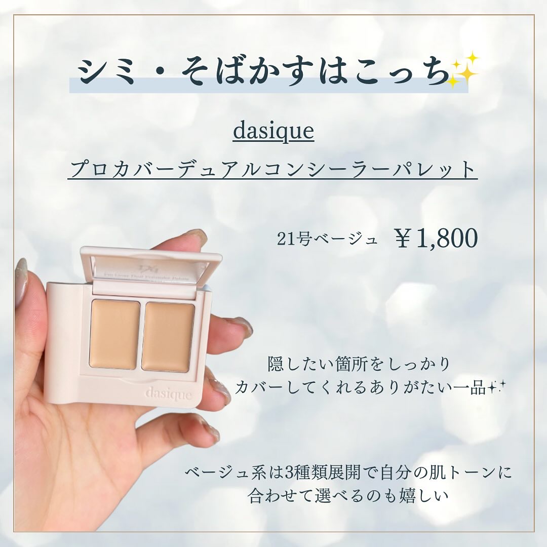 .♡こんなの求めてた~♡使いやすくてカバーもしてくれるコンシーラーがあるぞ〜!【#dasique】#プロカバーデュアルコンシーラーパレット各¥1,800好きだ~!!固すぎず緩すぎず程よい質感で肌にピタッと密着してよれにくい!まさに求めていたコ...