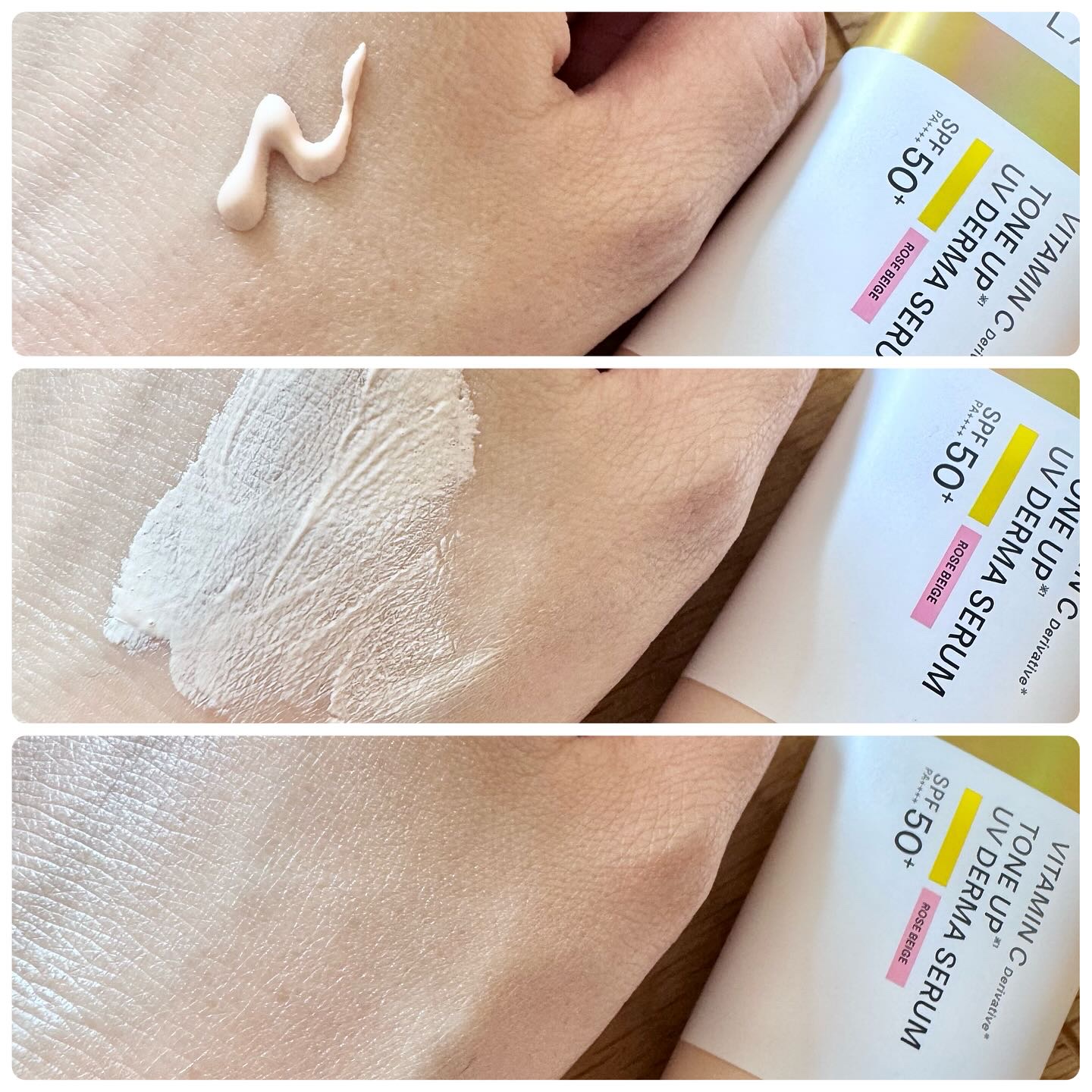 アンレーベルラボVトーンアップUVセラム🌹ローズベージュを試してみました🌸特徴🌸◆シミ予防*1毛穴*2対策しながらUVケアできる超高圧*3浸透型ビタミンC誘導体配合のトーンアップセラム◆美肌フィルター機能で毛穴の凹凸を整え、光を乱反射して滑らかな肌印象へ。◆石けん洗顔料でオフできます(単品使用の場合)🌹イエベの私にも馴染んだローズベージュ肌にうるおいを与え、血色感もアップ*✨日焼けによるシミを防ぎながら、色むらを自然にカバーして素肌を整えてくれます。*メイクアップ効果による◆パラベン、石油系界面活性剤、鉱物油、香料、合成着色料、エタノール、マイクロプラスチックはフリー処方*1肌にうるおいを与え、乾燥により目立った毛穴を目立たなくすること*2乾燥してキメが乱れた肌*3超高圧加工処理装置を用いた原料手持ちのファンデと合わせた時のツヤ感がたまりません🫶❤自然なツヤ感が30代には嬉しいですのびもよく、SPF50PA++++でした夏に向けてまだまだ愛用したいです#アンレーベルラボ#VトーンアップUVセラムR#UVセラム#目もとの印象チェンジ術