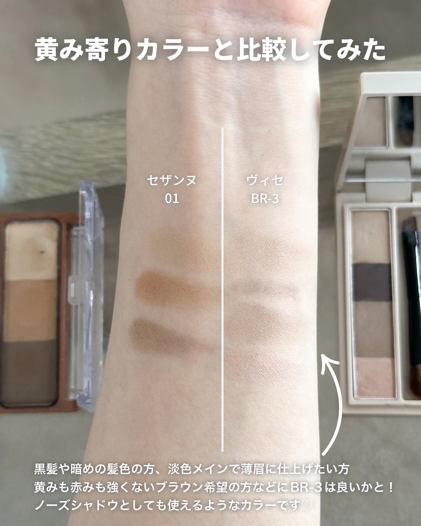 #ブルベ夏 #ブライトサマー #Visée #フラッフデザインアイブロウパウダー #フラッフデザインアイブロウカラー #BR-2ブラウン #BR-3アッシュブラウン #BR-4ピンクブラウン色が明るいので自眉が太くて黒い人はちょっと最初の方は...