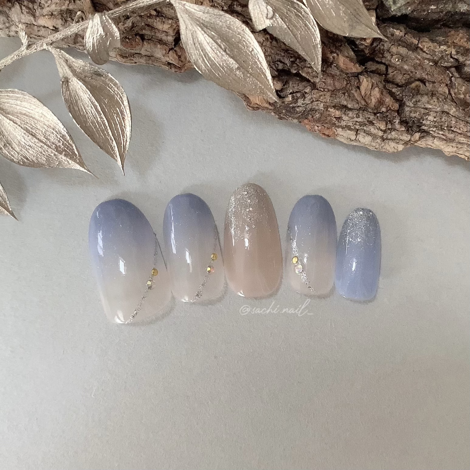 絶妙なくすみ感がおしゃれ💕秋冬ぴったりブルーグレーデザイン🩶Howtoは3枚目に😘中指はGY031F番を2度塗り、小指はBL009K番を2度塗りして、それぞれ爪先にSV082番を重ね塗りしました✨少しでも参考になれば嬉しいです♥️#セルフネイ...