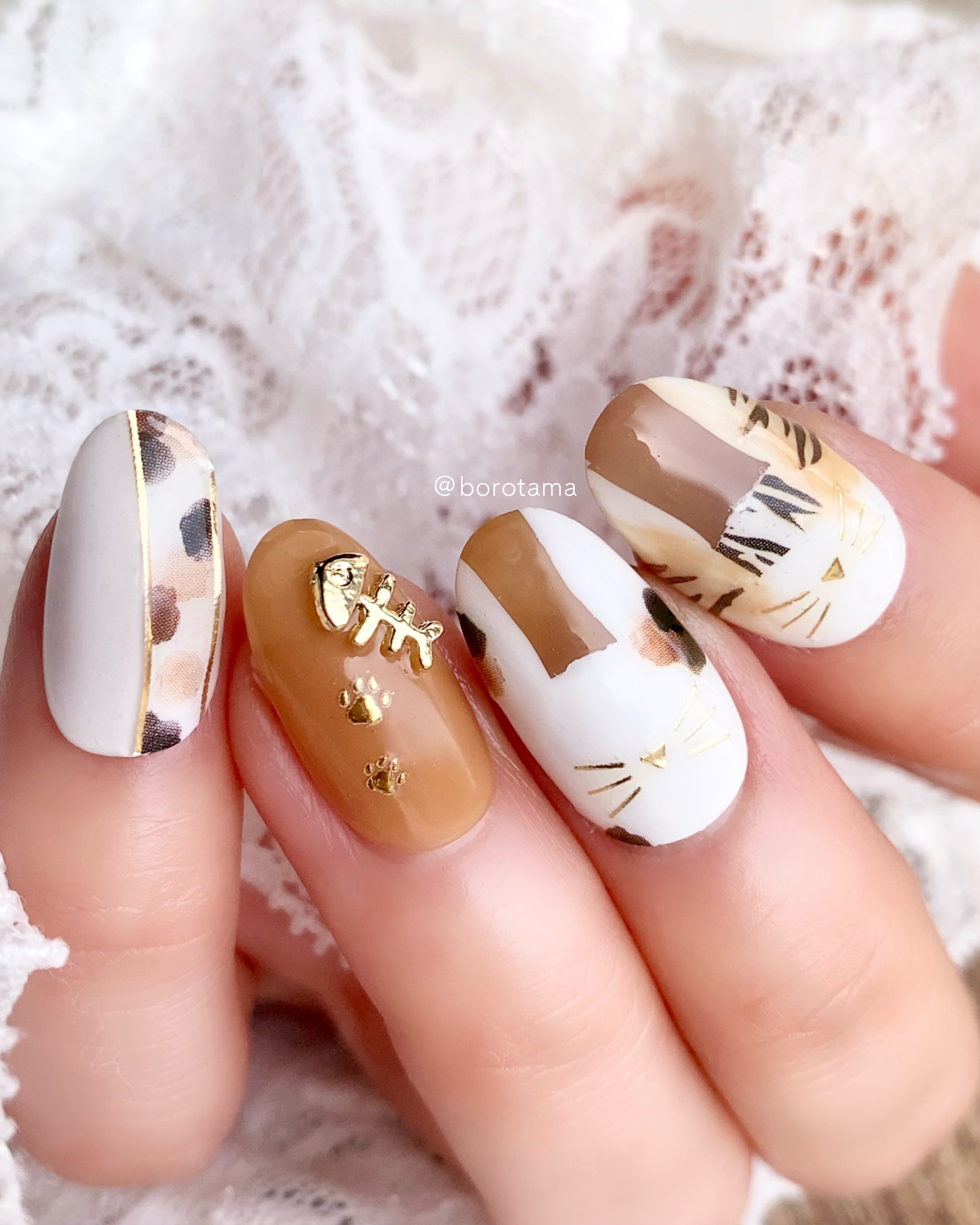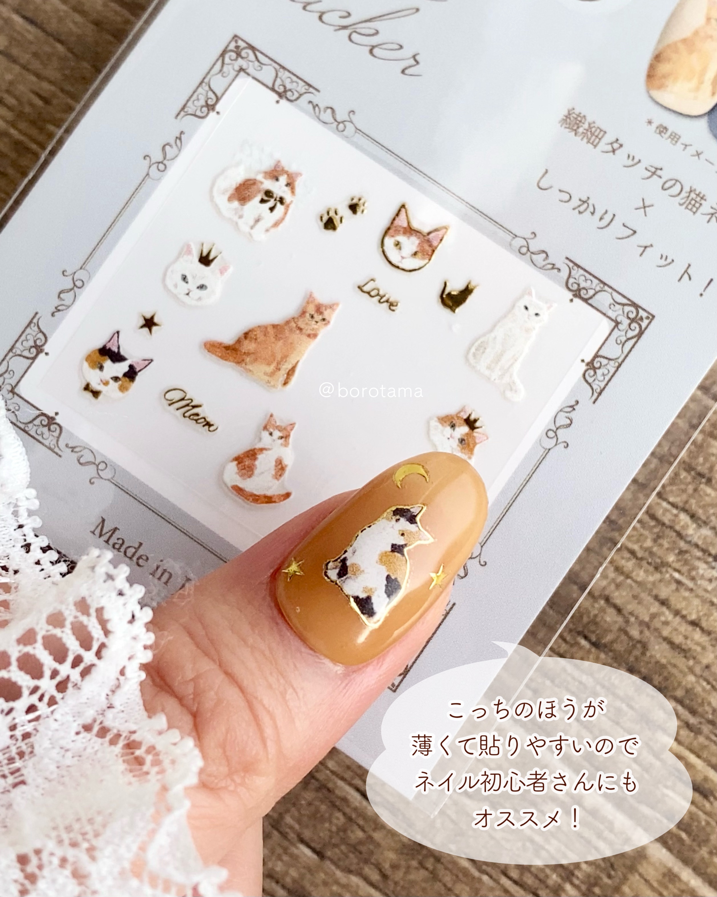 Seriaのシールで三毛猫・キジトラ猫ネイル🐈今日は途中までは前と同じ方法で塗っていき仕上げをネイルシールに頼ったので今日のデザインの方が簡単です🙌注意点としてはベースに塗ったカラーが乾いていないとシールを貼るときにヨレて失敗するのでよく乾か...