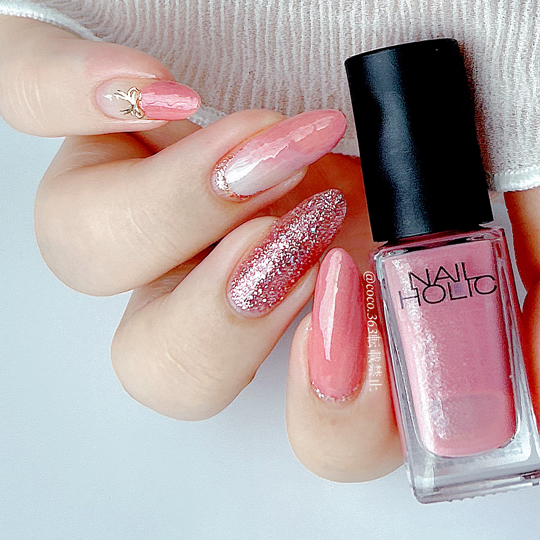 もっと早く使えばよかった!ネイルホリックくすみカラーズPK004K ¥396ネイルホリック初めてなんですけどこれ良いですね!速乾に優れてて塗りやすいし発色も良くてカラーバリエーションも豊富。なんか今まで見た目で避けてたけどもっと早く使えばよかったです…だって店頭サンプルも紙だしな…ボトルもコンパクトで乾燥してドロドロになる前に使いきれそうなサイズ感だし、ほんとに優秀。PK004Kはくすみカラーズだけどそんなにくすみ感は感じません。画像は一度塗りです。発色がいいのでグラデはどうなんだろう?結構ピンクです!って感じの色なので、仕事でもいけるかは職場次第ではダメかもなぁって感じの微派手さです。とにかくネイルホリックおすすめなので今までスルーしてた方、見てみてください。