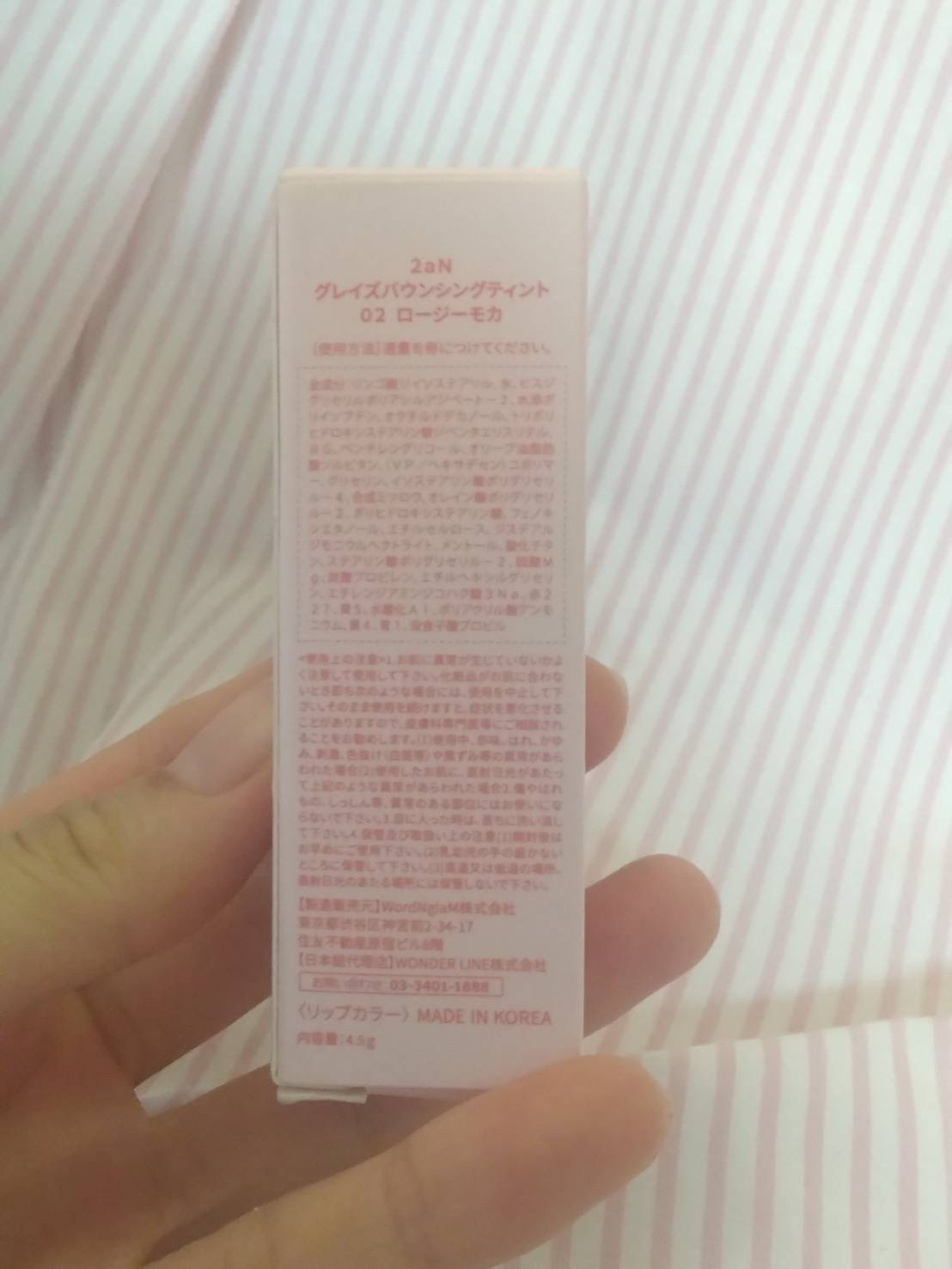 【使った商品】2aNグレイズバウンシングティント 02RosyMocha【色味】少しブルベさんよりの色【色もち】意外と良かった【質感】プランパー効果があり少しスースします【良いところ】スースーぐわいがちょうどいい【イマイチなところ】あまり色が...