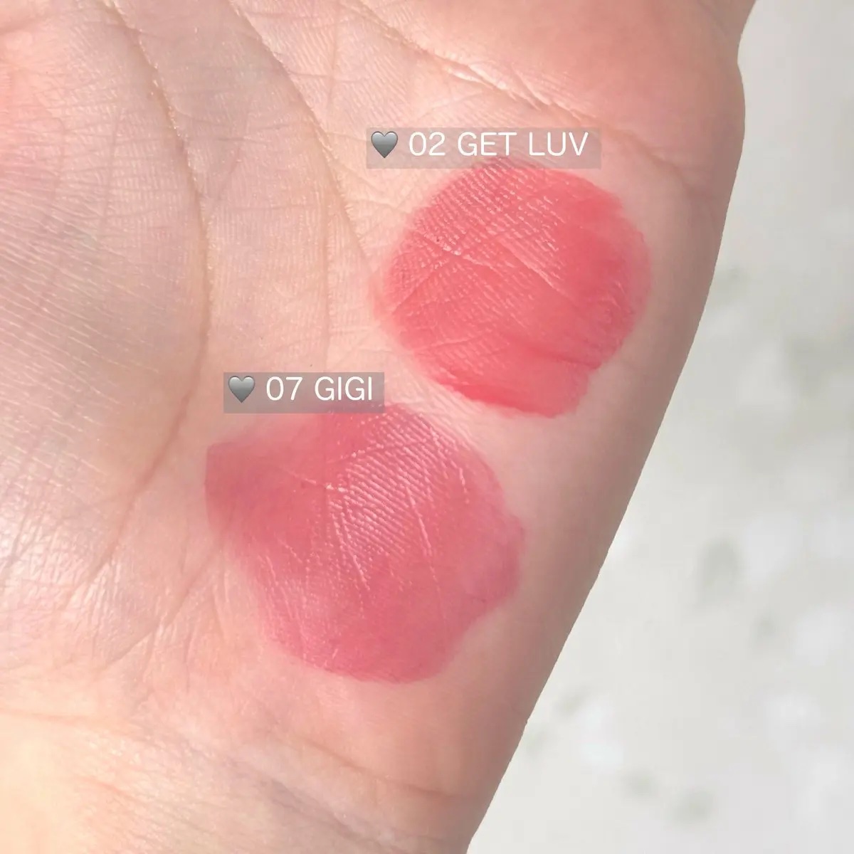 #giftedtooq様より人気のアイテムをいただきました(ˆ.̫.ˆ)🌟元々持っていたペンシルライナーも参考に載せています☺️💓ペンシルライナーはカラーが豊富で頂いたカラーで涙袋、アンダー、涙袋の影に使用しました🪄⋆꙳リップティントはセミマットタイプで最近はよくGETLUVをベースに使っています🩶🩶