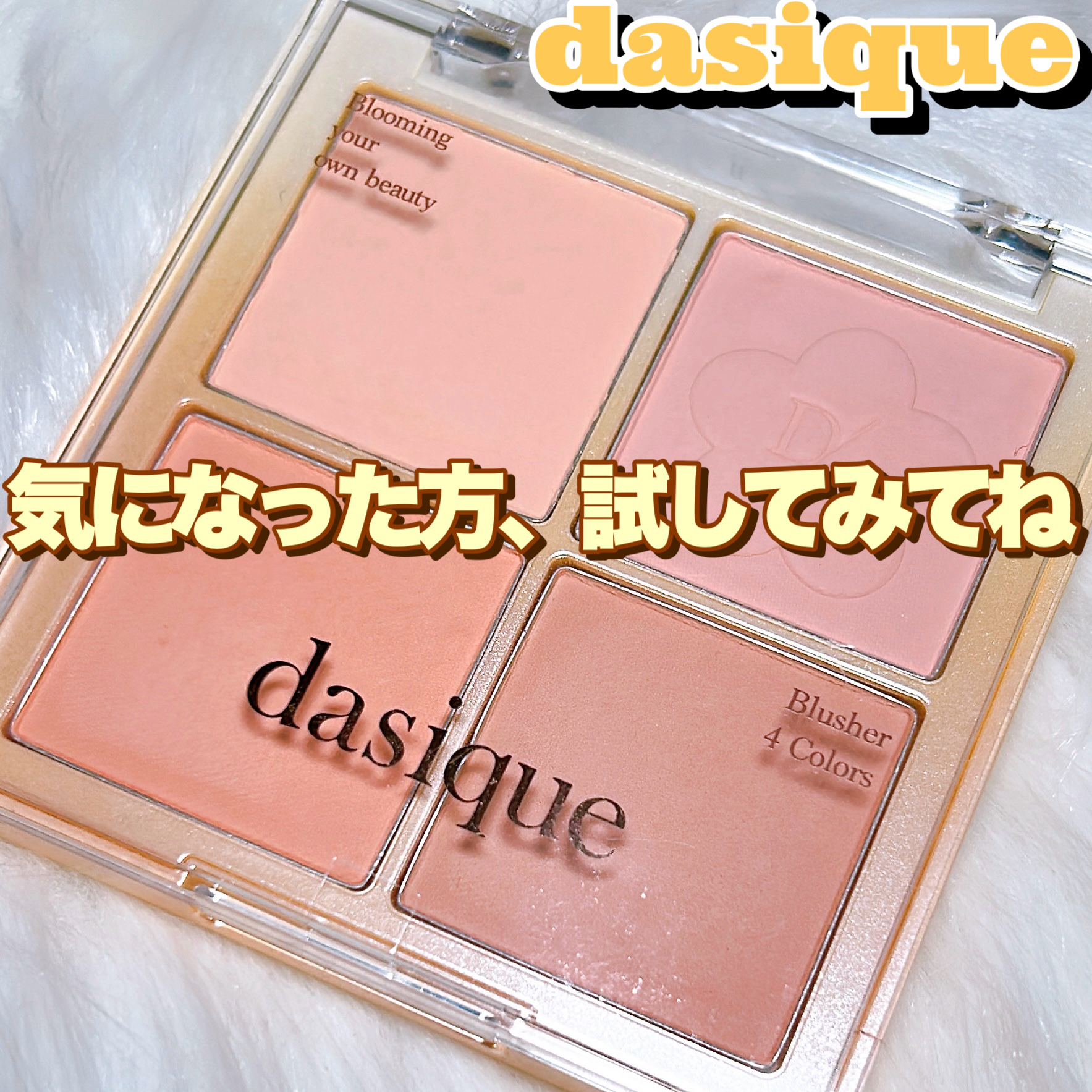 こんにちは。こんばんは。今回はdasiqueのブレンディングムードチークをレビューしたいと思います!【使った商品】dasiqueブレンディングムードチーク12ゴールデンフラワー【使ってみて】粉質柔らかくて粉飛びはしやすいかなと思います。明るめ...