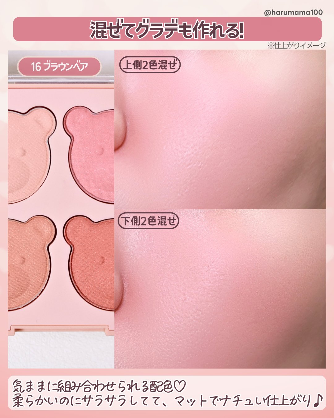 デイジークBlendingMoodCheek#16✨4色ぜんぶ塗ってみたら、テディベアみたいな甘ふわほっぺに🐻💕どのカラーも肌に溶け込む血色感で可愛すぎる…!#韓国コスメ#Qoo10#チークパレット#dasique...