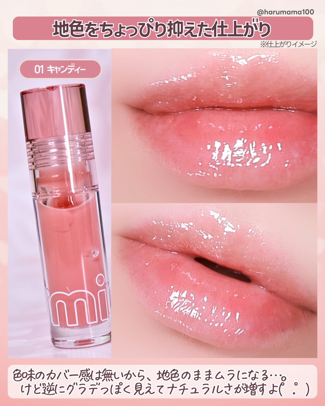 うるぷる唇になれて盛れすぎる。minumミニュムバブリッププランパーキャンディーレビューminumのリップティントとミニュムバブリッププランパーのセットを購入しました。リップティントよりバブリッププランパーの方が好きだったのでまず最初にこちらを紹介します!こちらプランパーとのことですがスースー感はほぼないです。01キャンディーはほぼ透明なベビーピンクですがほんのりラメが入っていてチラチラと輝くのが可愛いです💕しかもテクスチャーが固めでチップに沢山つきにくくて丁度よい量が塗れてすき!スースー苦手さんに特におすすめしたい。ぷっくり見えるプランパー探してる方にもおすすめ❤️#プチプラ#プチプラコスメ#プランパー#新作コスメ#コスメ#リッププランパー#リップメイク#コスメ紹介#ミニコスメ#バズコスメ#バズりコスメ#新作#コスメマニア#コスメレポ#ブルベ夏#minum#ミニュム#バブリッププランパー #キャンディー #こっくりカラーコスメ#Qoo10メガ割