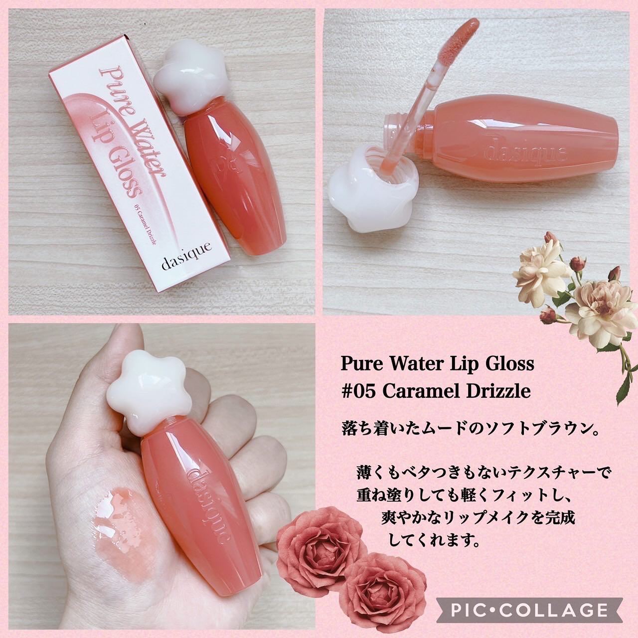 dasiqueピュアウォーターリップグロス05キャラメルドリズルうるつやリップになれるグロスです🩷発色がしっかりしてる!綺麗に色が乗ります🌟でもグロスだから色はほぼ残らない🥲基本的に重ね塗りで使ってます!乾燥しないし、縦皺をなくして唇を綺麗に...