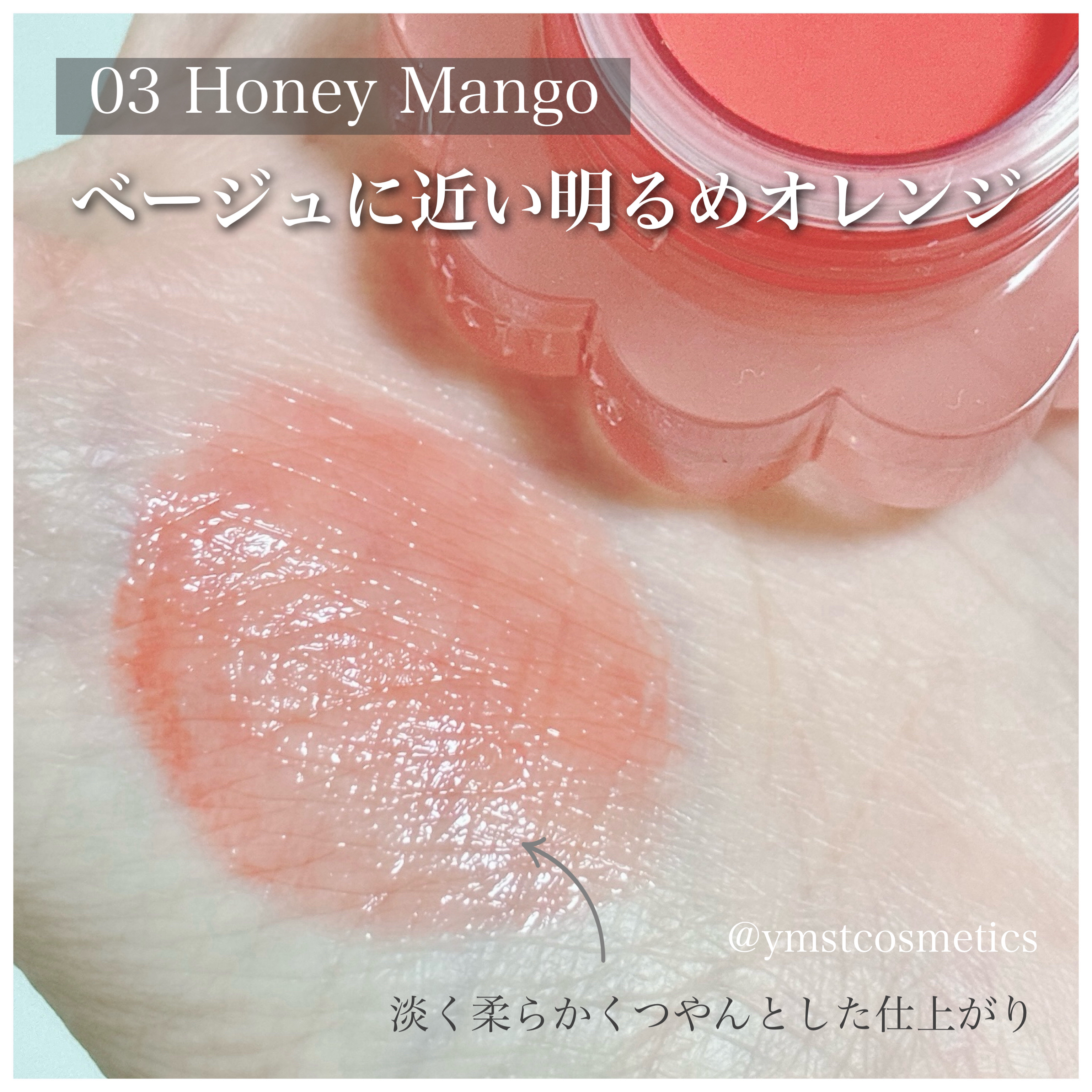 🫧dasiqueChewingGlowPot#02PeachDrop#03HoneyMangodasique様よりチューインググロウポットをいただきました。ゼリーみたいな容器で可愛い♡ツヤぷるテクスチャーでリップにもチークにも使えるよ🫶🏻内蓋...