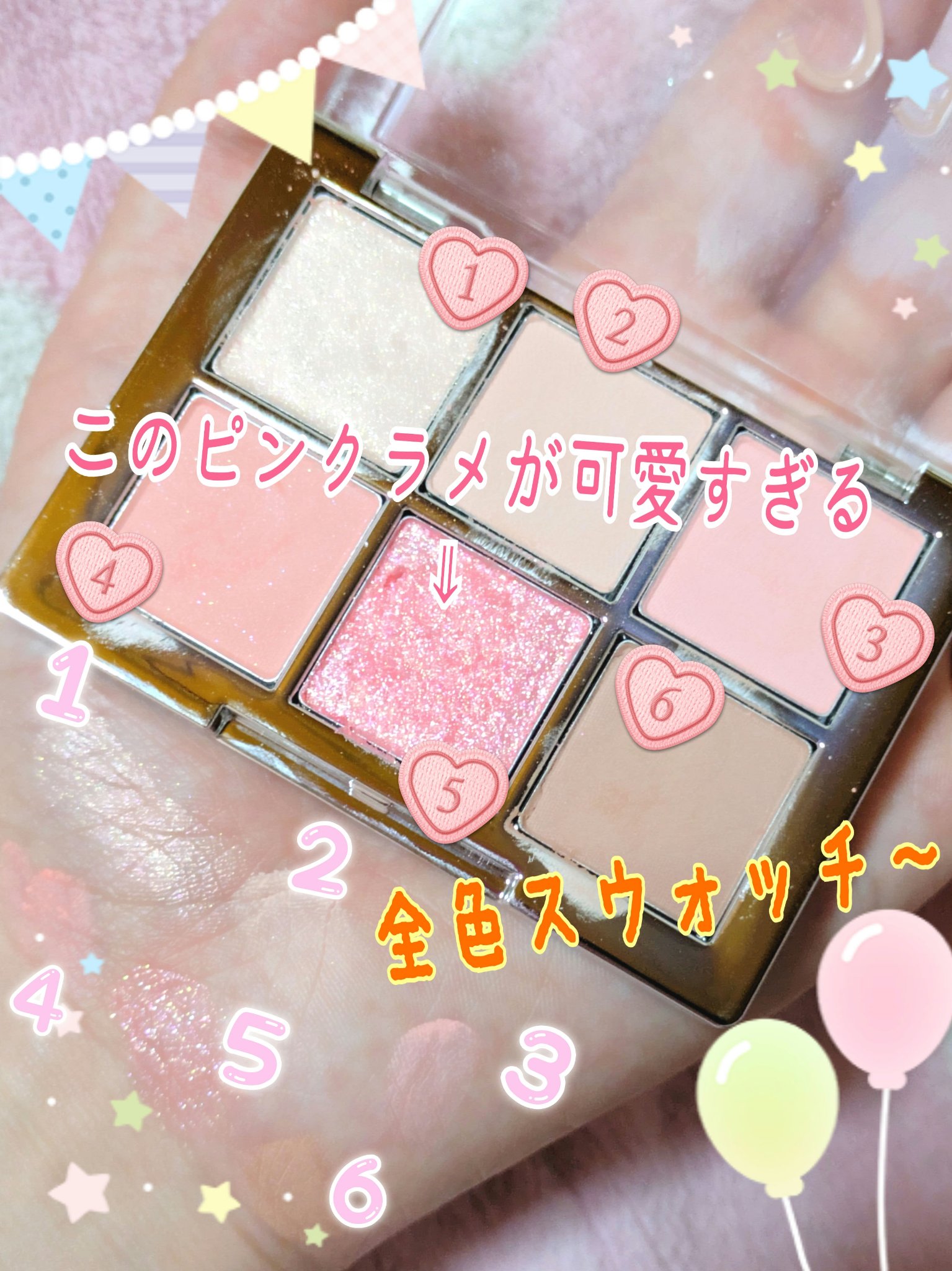 【イエベ春の甘々アイシャドウ】ベターミーアイパレット🍬バブルガム✼••┈┈••✼••┈┈••✼••┈┈••✼••┈┈••✼おはなまつりです🐰2aNのアイシャドウで今年の春頃出た新色からイエベ春のピンクメイクにぴったりなバブルガムをお迎えしました🍬🦄2aNベターミーアイパレット 12🍬バブルガム6色入りパレット ¥2200全色色名つき!↓01:SUNSHINE(サンシャイン)バニラアイスみたいなラメカラー→目頭切開ラインにくの字に入れて涙袋やハイライトにも!02:APRIL(エイプリル)ふんわりマットなライトベージュカラー→ベースに03:MELODY(メロディー)お菓子みたいなピンク→目頭側や涙袋に04:TULIP(チューリップ)華やかピーチピンクのパール入りマットカラー→目尻側に05:サンキスド(SUNKISSED)イチゴシャーベットみたいなシャリシャリピンクラメ→トッピングに!06:ICEDTEA(アイスティー)ふんわり軽やかなアッシュブラウン→締め色に⑤のピンクラメがとにかく可愛い!😍締め色のブラウンが優しい色味なのもライトスプリング的には嬉しいポイント🥹粉質はきめ細かいようでブラシで取ると粉が舞うのが見えたのでチップを使う方が良いかも😀2aN今回初めて使ったけどチークとかも可愛いから色々見てみようかな♪(画像5枚目参照)デイジークのチューインググロウポットのピンクバブルと合わせてピンクバブルガムメイクしてみたよ😉こちらはチークとリップに使ってリップは色持ち重視でhinceのベアチューリップを重ねたよ🌷アイブロウもピンクブラウンとアイライナーもダージリンピンクでピンク尽くしに!🩷✼••┈┈••✼••┈┈••✼••┈┈••✼••┈┈••✼ご覧いただきありがとうございました😊#新シーズンあか抜け計画