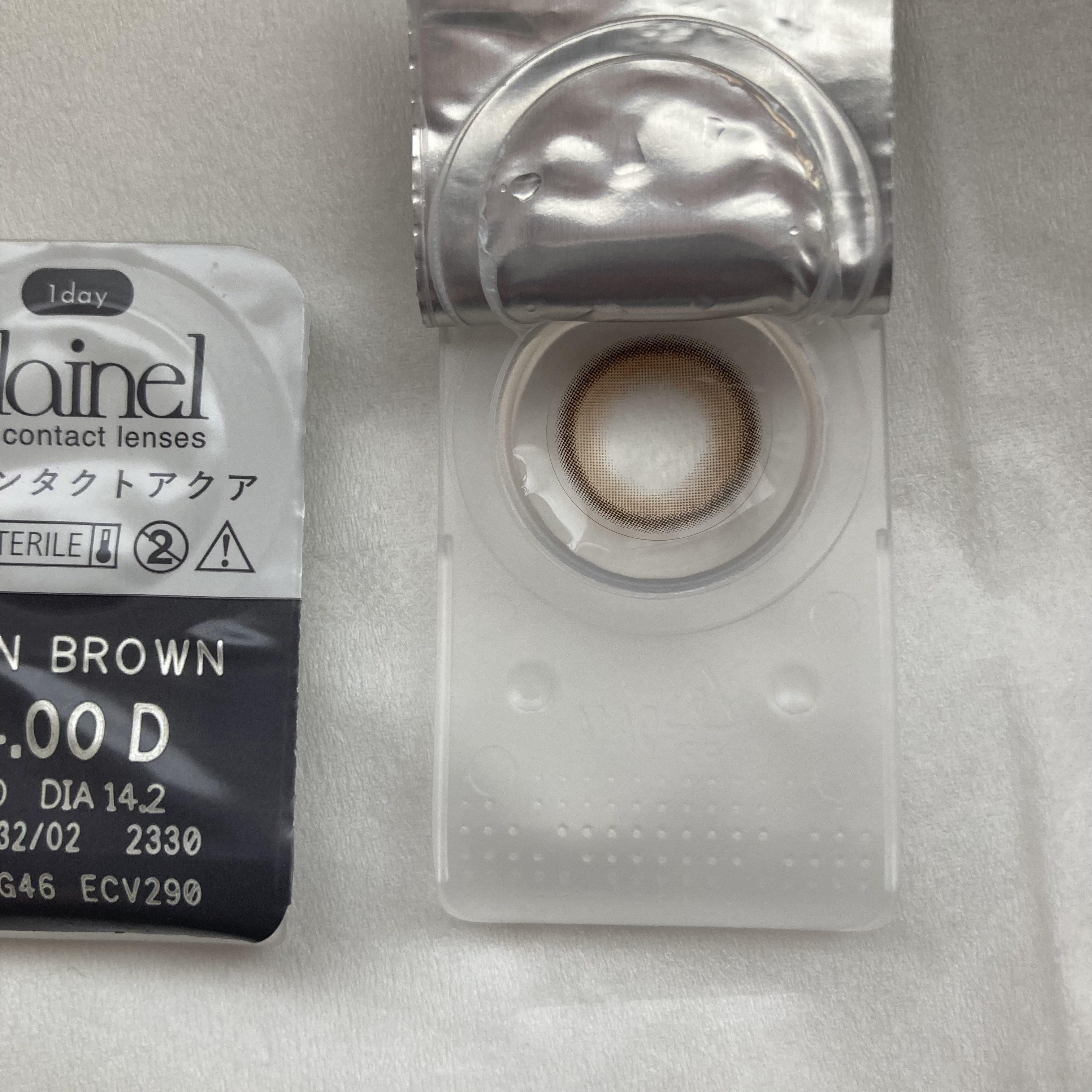 Clainel1DAYムーンブラウンデザイン👉縁のぼかしが可愛い水光カラコン目の中で回っても違和感はなかった可もなく不可もなくでこれじゃなくてもいいかなと思った大きさ👉着色直径は少し大きく感じたすっぴん👉すっぴんだと浮いたアイプチ👉あり○なし...