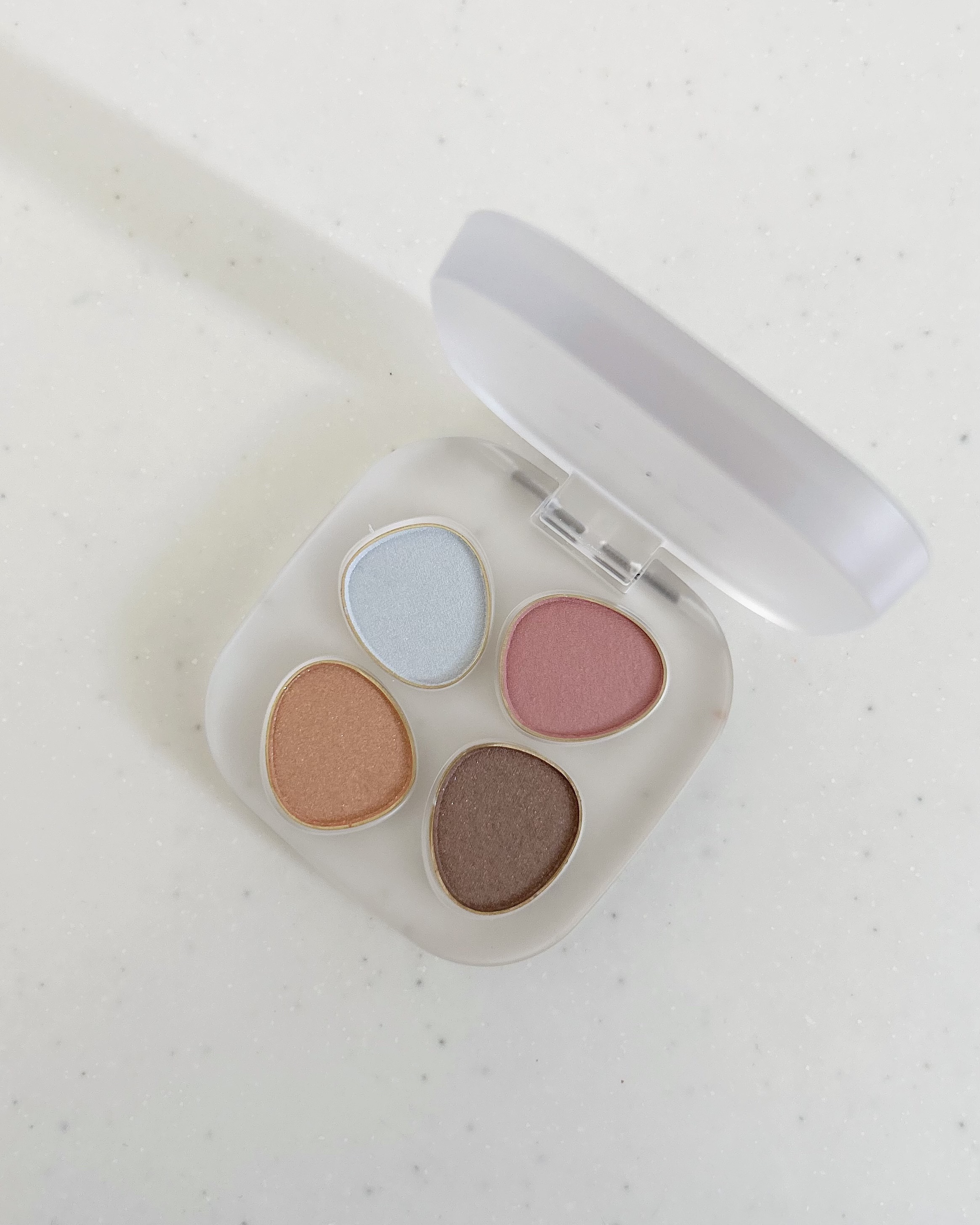 【使った商品】to/oneのトーンペタルフロートアイパレット、05LagoonSunset【色味】左上、ラメ入りの透け感あるブルー。目に乗せると白っぽいブルー。左下、ラメ入りの夏っぽいオレンジ。ブルベも使いやすいオレンジ。右上、マットのピンク。ブルベイエベ問わず使いやすい。右下、マットのブラウン。濃すぎない締め色でどんなときも使いやすい。【密着感】粉飛びはほぼ感じない。【発色】全体的に薄めですが、重ねればある程度濃くなる。【良いところ】パッケージが神。コロンとしてて可愛い。すりガラスも可愛い。ブルベイエベ問わず使いやすいカラーばかり。色のバランスもいい。カラーパレットなのに、ナチュラルにもできる。【イマイチなところ】ない。#新作コスメ#アイシャドウパレット#イエベ春#ライトスプリング#ナチュラルコスメ#スウォッチ#コスメ紹介#コスメレビュー#イエベ春コスメ#ブルベ夏#ライトサマー#ナチュラルメイク