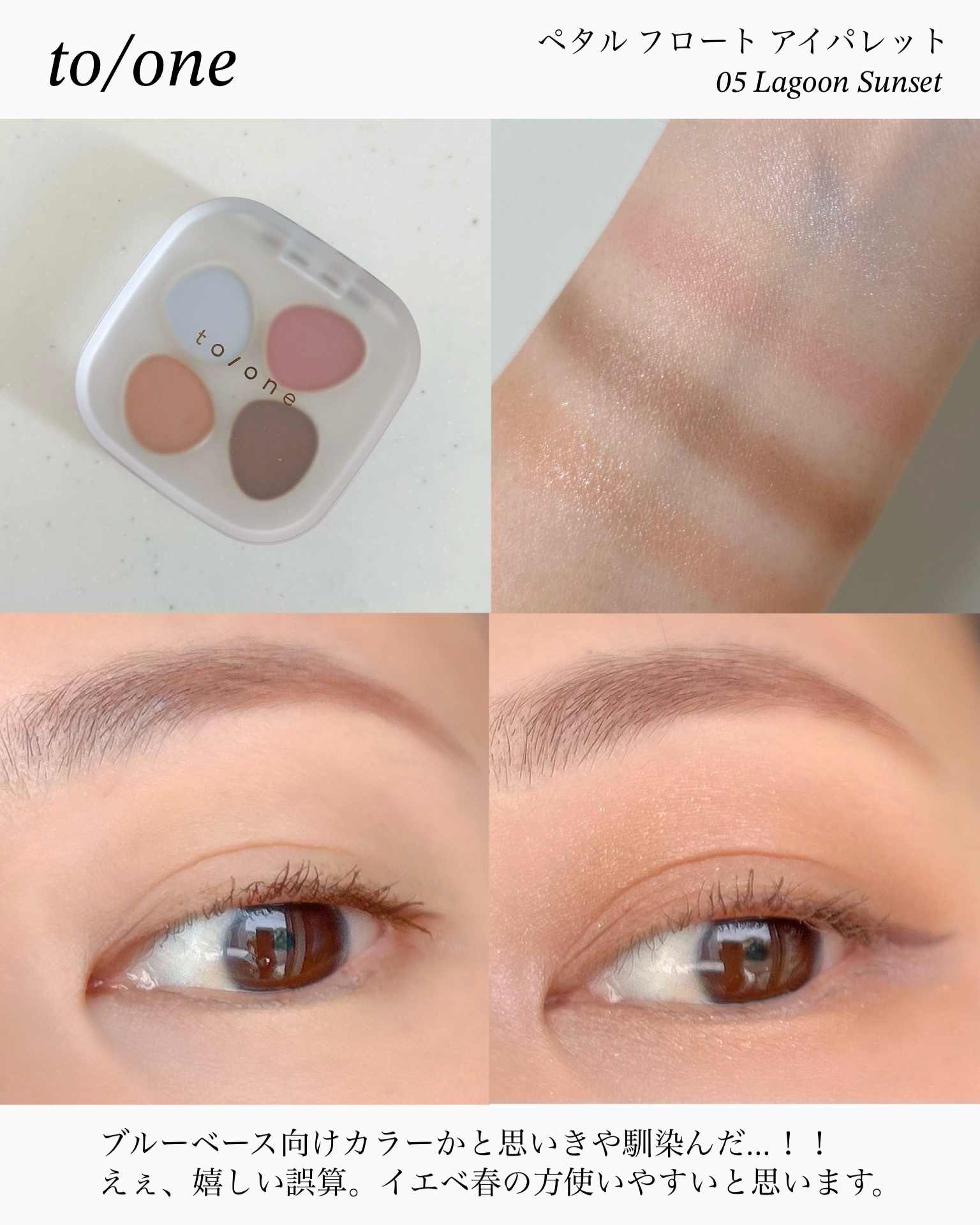 to/oneトーンペタルフロートアイパレット03EternalPetal04SweetSorbet05LagoonSunset¥4,180#イエベ春#アイシャドウパレット#新作コスメ#ナチュラルコスメ#春コスメ#春コスメ購入品レポ...