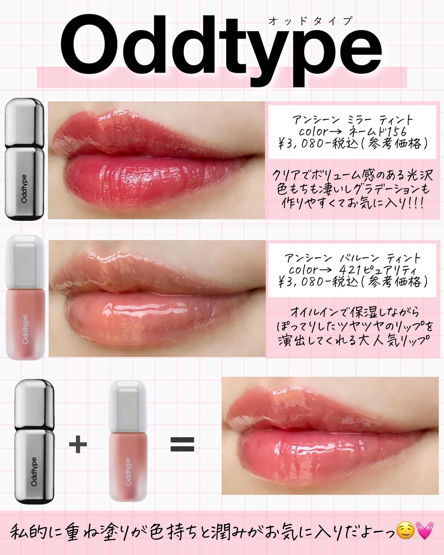 【PR】透き通るような発色と、モテ感溢れる風船のようにふくらむボリューム×ツヤが最強✨✨Oddtype(@oddtypeofficial)様より提供いただきました🌟✔️アンシーンバルーンティント唇のボリュームとツヤを最大限に引き出すオイル配合...