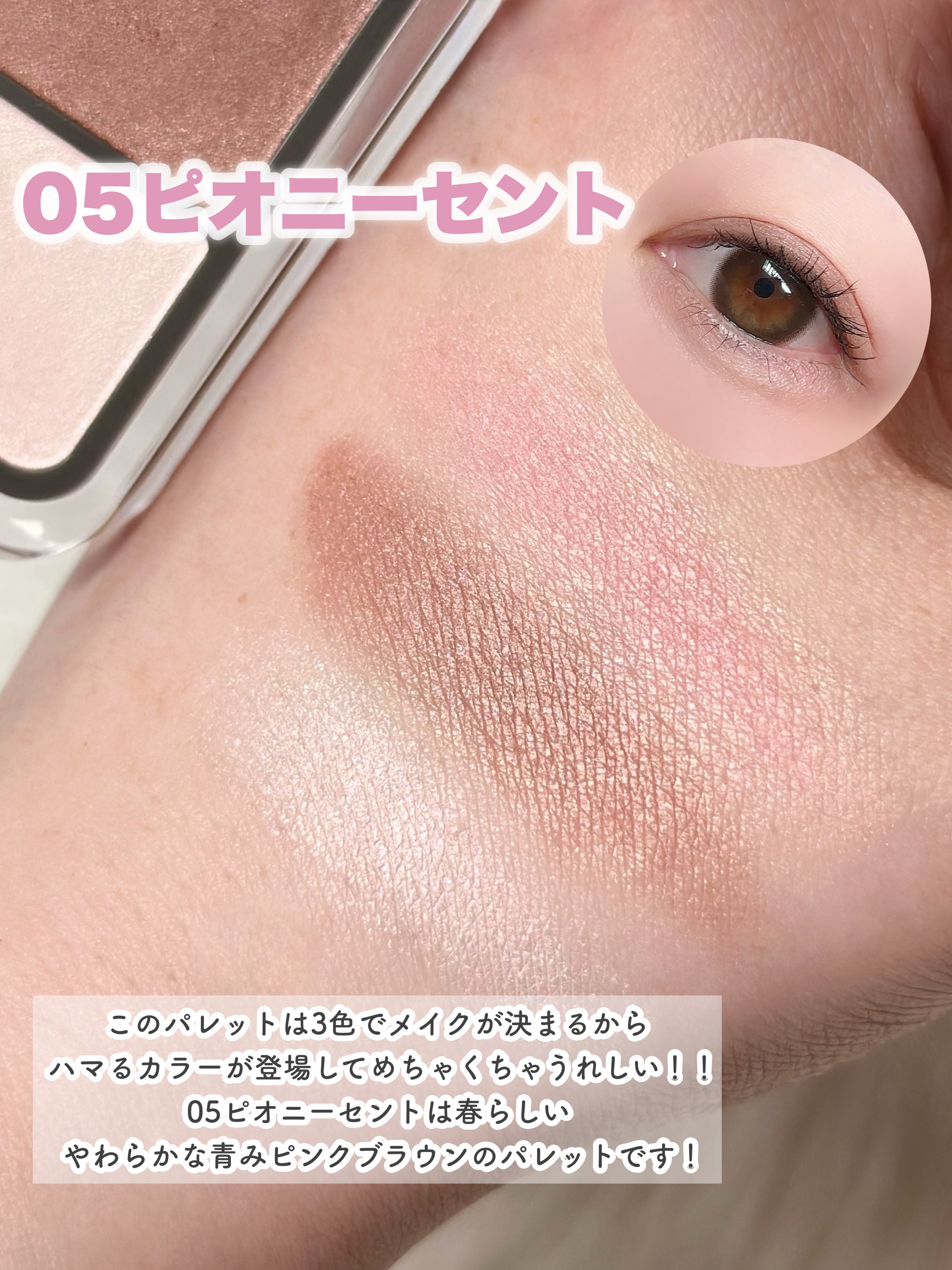 - 生き生きとした春をイメージしたピオニーピンクカラー ブルベ・夏タイプの方におすすめ 発売日: 04,05:2025年 4月1日(Qoo10にて発売。楽天市場では4月4日より、オフライン店舗では4月19日より発売) 100:2025年4月19日(オフライン店舗より順次発売。Qoo10では5月1日より、楽天市場では5月4日より発売) タッチした瞬間に感じる感覚的な使用感とベーシックなカラー組み合わせのデイリーパレット