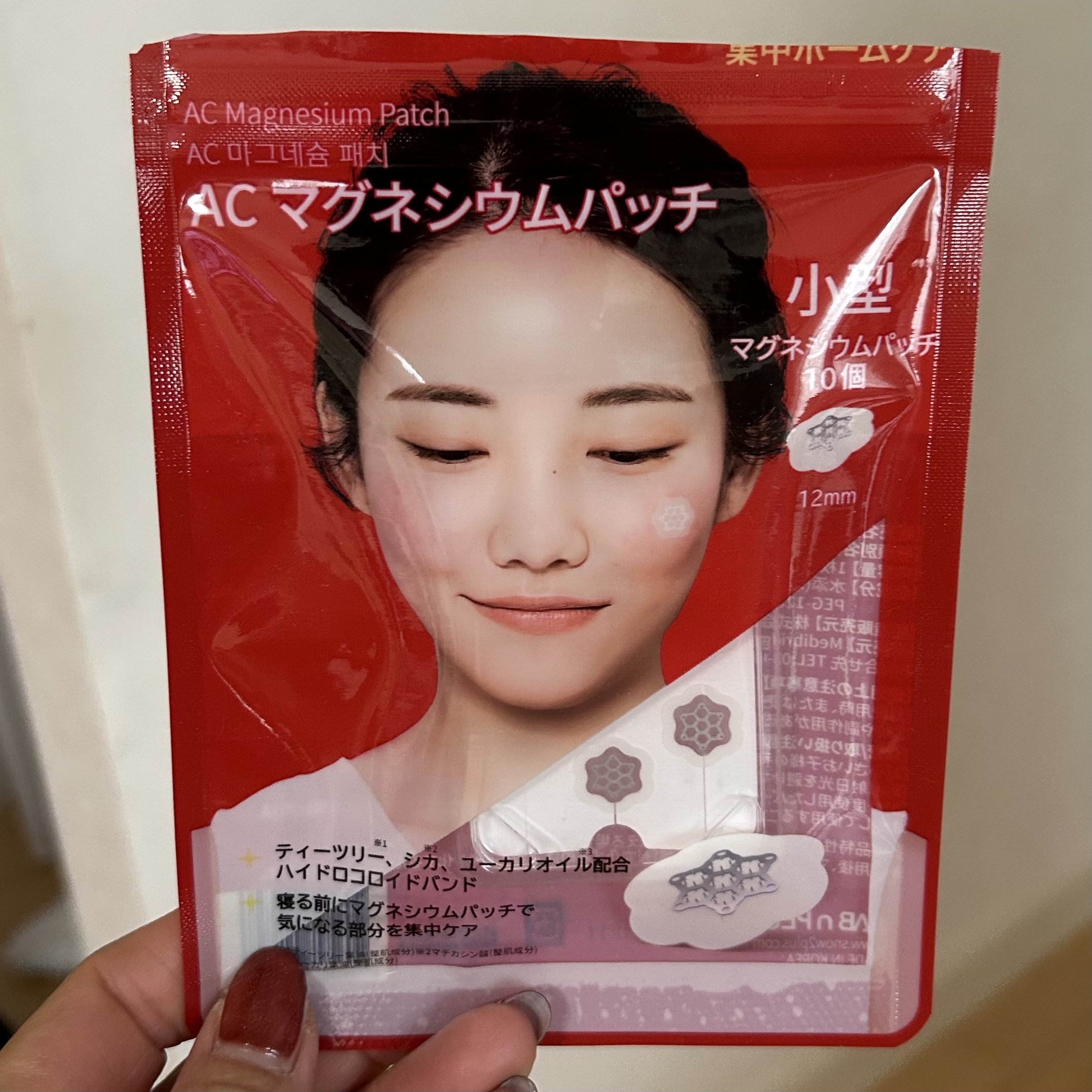 韓国のドラッグストアでも話題らしいマグネシウムパッチ。2〜8時間寝ている間に貼るだけで、気になる肌トラブルを集中的にケアできるのだそう。マグネシウムは人体必須ミネラルなので敏感肌の方でも安心です!私はあまりチクっとした感じは感じなかったので、無くなったらリピしたいと思います!