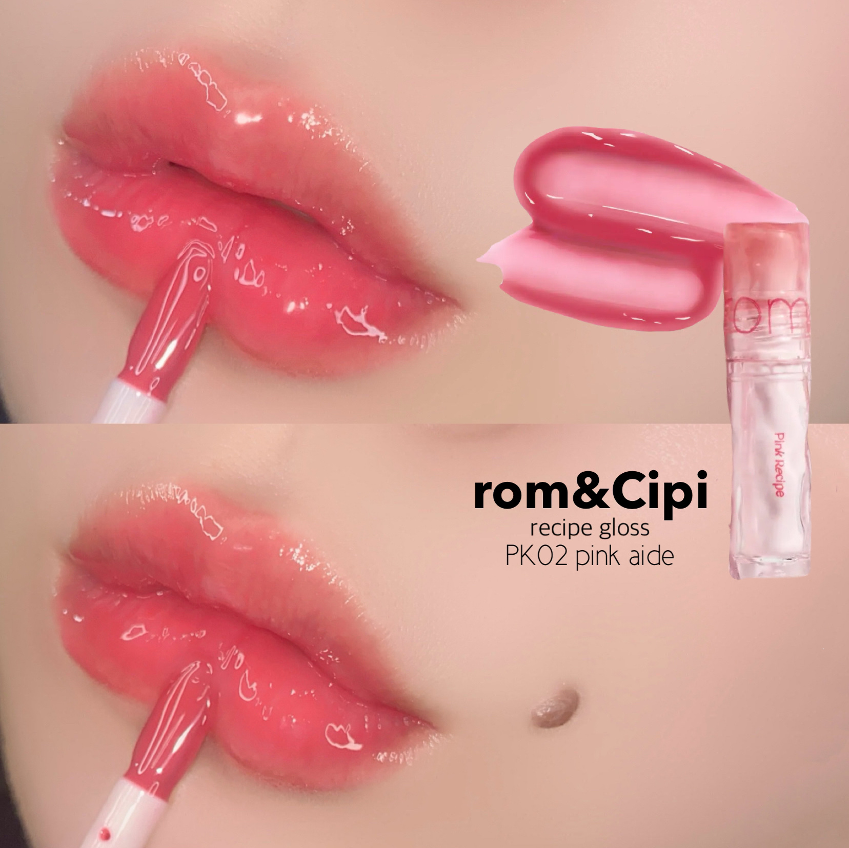 rom&CipiロムシピレシピグロスPK02 ピンクエイド4月25日発売ロムアンドとシピシピのコラボアイテム!✨使用感はロムアンドと似ててめちゃくちゃぶるんぶるんの口になります!色も絶妙なピンクでとってもかわいいです!色持ちは何度か塗り直して...