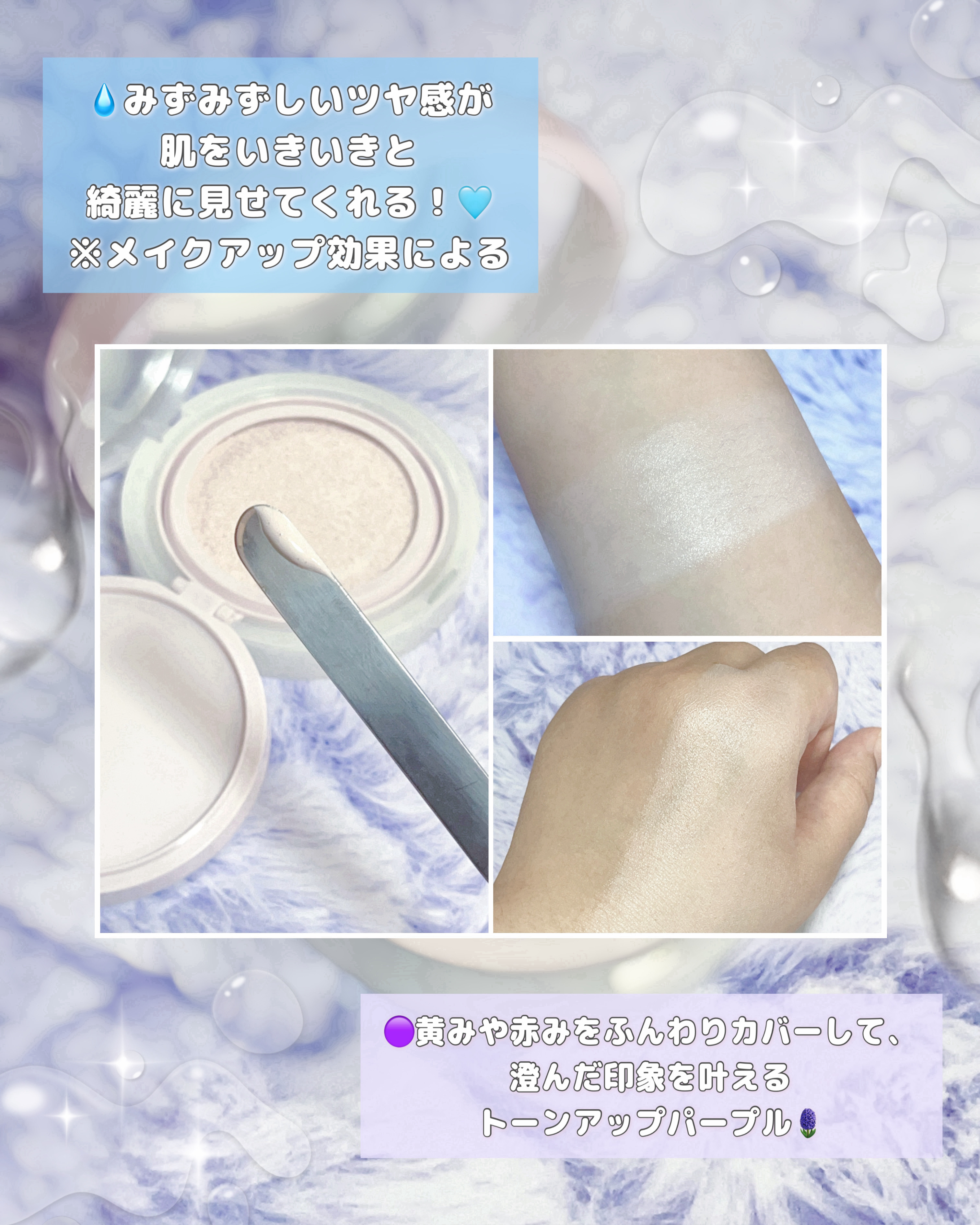 使用感・テクスチャーを動画でチェックライティング トーンアップ サンクッション ミスティ―パープル