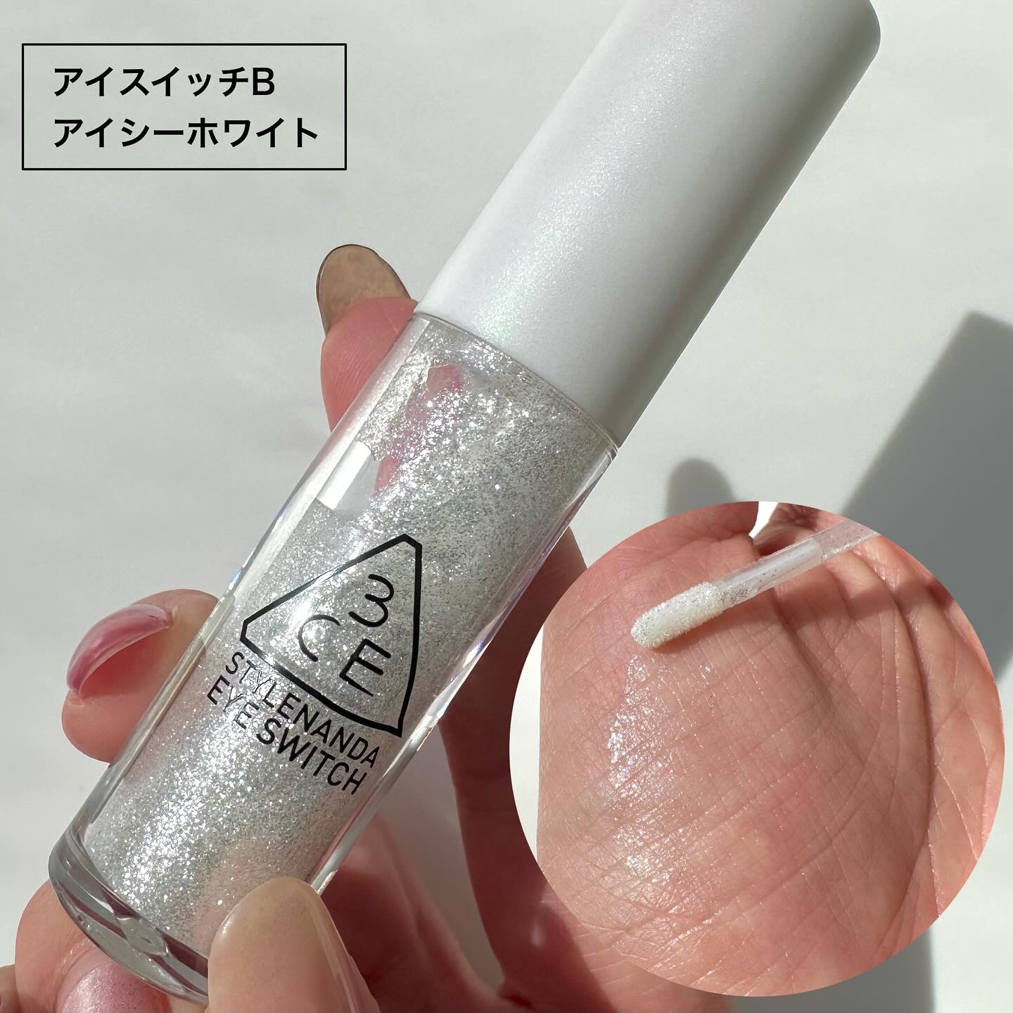 ラメが分かるスウォッチシリーズ💎/3CE3CEアイスイッチアイシーホワイト\4月26日発売!こんにちは!あざとコスメ好きのなちです!🌸透け感あるホワイトラメぎっしりのグリッター!平たくて小回りの効くチップなのでまぶたにも塗りやすい!しっとりと...