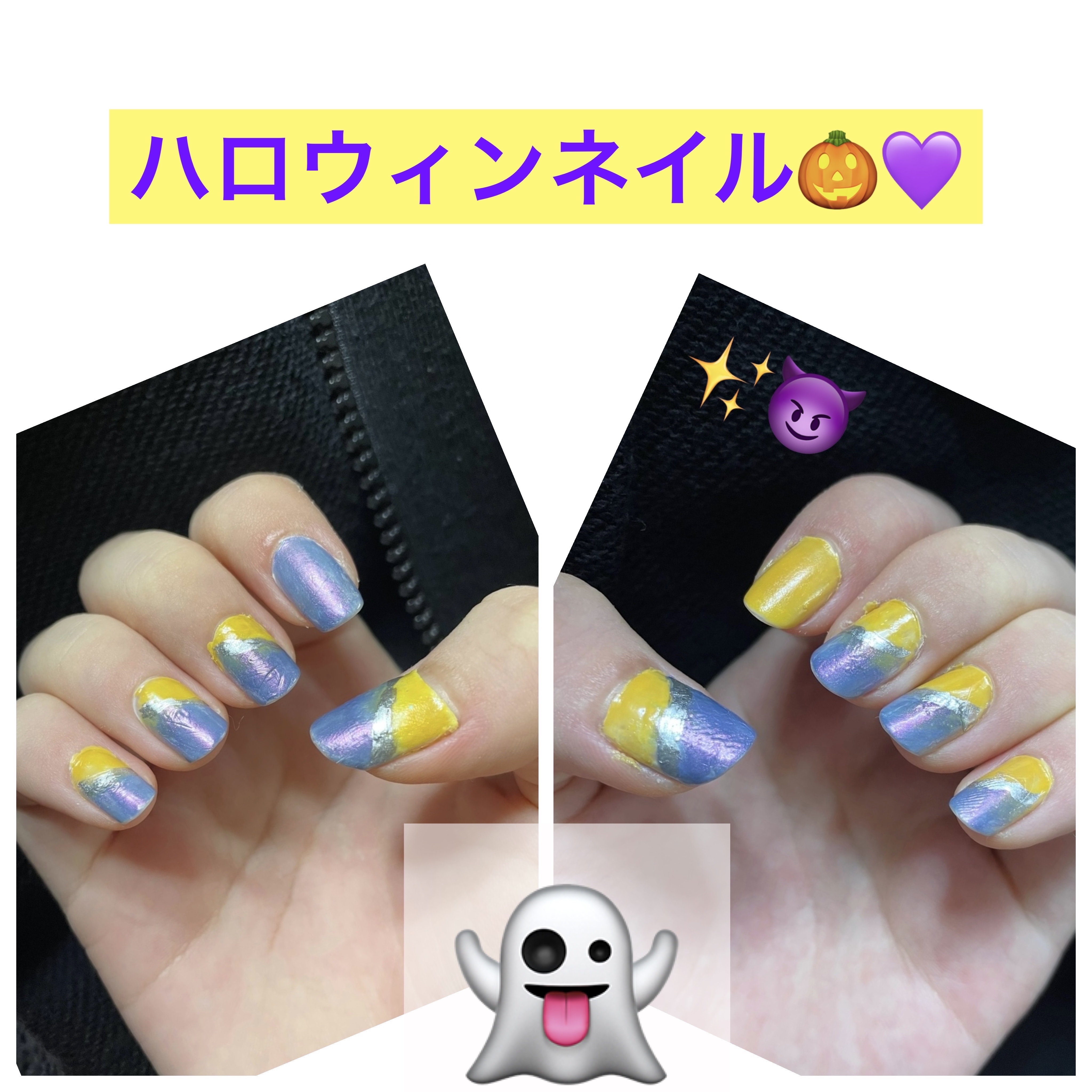 ハロウィンネイル🎃💜キャンメイクカラフルネイルズ N116 DJナイト ¥396オルビスネイルカラー¥660 ハロウィンネイル第二弾!文化祭があったのでちょっと凝ってみました!①根元側半分塗る(紫)②乾かす③先側塗る(黄)④乾かす⑤境目をゴールドで塗る#大人のモカネイル図鑑#セルフネイル#ネイルカラー#秋ネイル#ネイルポリッシュ#ラメネイル#プチプラ#プチプラネイル