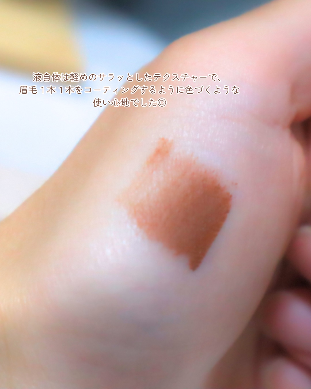 今回はLaka様からピクシーブロウカラ(#01 ピーナッツブラウン)をご提供いただき、使用させていただきました。眉の毛流れを活かしながら自然なカラーリングが楽しめるアイブロウマスカラです。無造作な眉にも繊細にタッチでき、華やかでありながらしっかりと毛流れをフィックスしてくれる設計だそう。テクスチャーは軽く、眉にスッとなじみます。ブラシが非常に細く、眉尻や細かい部分にもピンポイントで使いやすい形状なので、左右差の調整や毛流れの整えにも便利でした。ダマ等なく、均一に伸びてくれるので、テクニックいらずで簡単です。発色は鮮やかですが、肌や髪になじみやすいナチュラルなウォームブラウンで、日常使いしやすいと感じました。パッケージはシンプルで、ポーチの中でもかさばらず、持ち運び易く、メイク直しにもピッタリです。眉のカラーを少しだけ柔らかく見せたい方や、細かな部分も塗りやすいので、眉メイクにこだわりたい方にもお試いただきたい商品です。#PR#カラーマスカラ#Laka#ピクシーブロウカラ