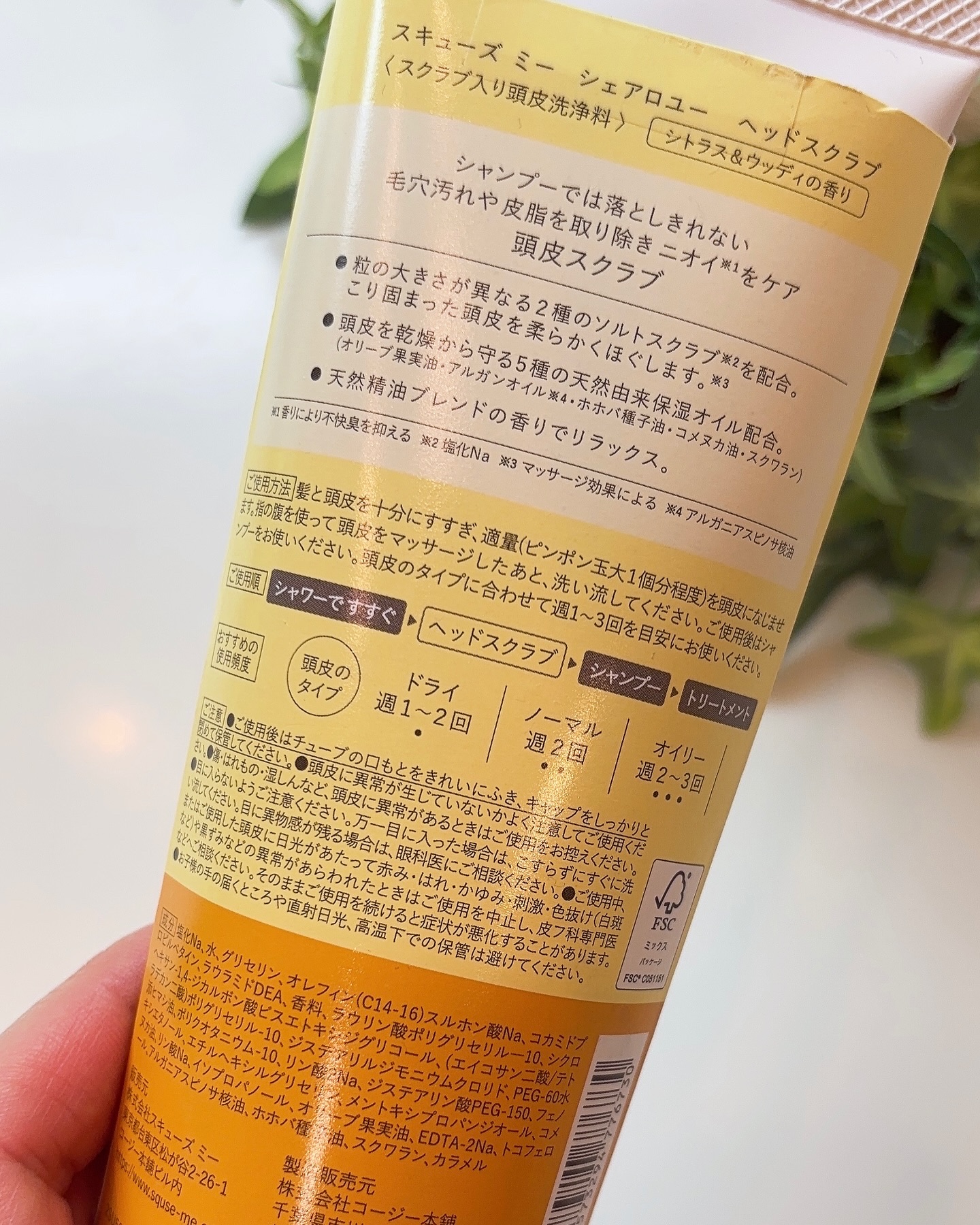 天然精油 粒の大きさが異なる2種のスクラブで毛穴+皮脂+ニオイケア しちゃいましょ❣️スキューズミー🟠シェアロユーヘッドスクラブ シトラス&ウッディの香り🟠チューブ式の容器から出すとハーブの香りがして落ち着きます🌿気持ちが華やかになります✨天...