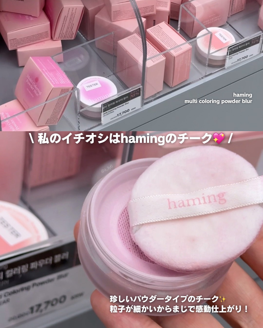 【水彩画フィルター風】ふんわり粉チーク☁️💖´-#haming#マルチカラーリングパウダーブラー04ティア※Qoo10購入時金額¥1,782YouTuberのLUCYちゃん(@lucci_428)が作った今話題の韓国コスメブランド、ハミン...