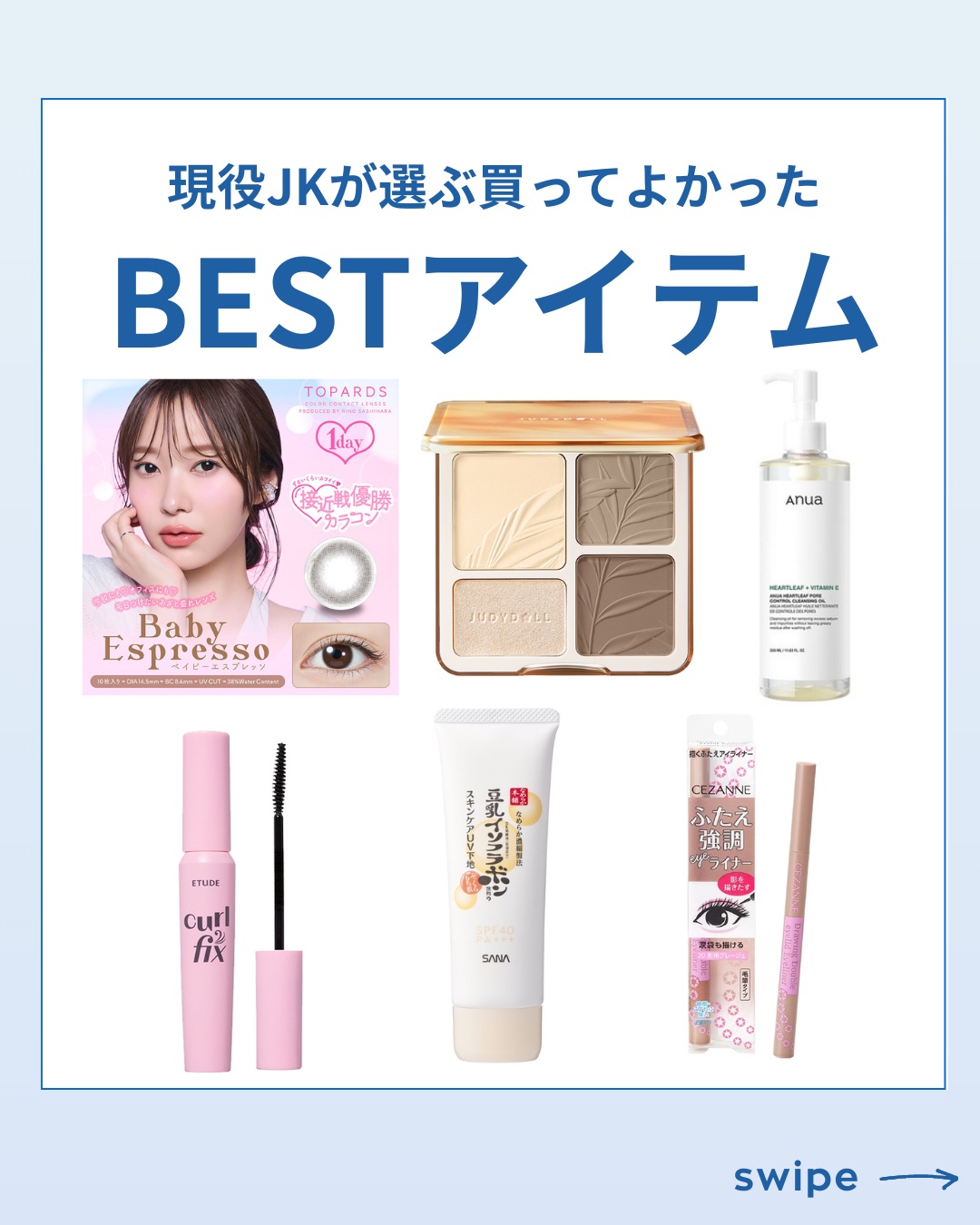 現役JKが本気で選んだ✨2025年下半期BESTコスメ🌟「これ買ってよかった!」って心から言える厳選アイテムを大公開🙌🏻💕毎日使えるコスパ最強アイテムから、SNSで話題のバズりコスメまで!全部ガチレビューです💪🏻💖JKが選んだBESTアイテム6選💖|カテゴリ|ブランド/商品名|価格(税込)|推しポイント||毛穴ケア|ANUA(アヌア)クレンジング|1,980円|黒ずみに◎!毛穴の奥までしっかり洗浄してツルツル肌に✨||マスカラ|ETUDE(エチュード)カールフィックスマスカラ|1,650円|ボリューム&長さ◎!最強キープ力でパッチリ上向きまつげを一日中キープ!||カラコン|TOPARDS(トパーズ)ベビーエスプレッソ|1,760円|ナチュ盛り最強♡ナチュラルなのにしっかり盛れて、うるうる瞳に!学校メイクにも👌🏻||シェーディング|JUDYDOLL(ジュディードール)シェーディング|2,090円|立体感◎!これ一つで小顔&彫り深メイクが完成!肌なじみも神です✨||UVミルク|なめらか本舗薬用美白スキンケアUVミルク|記載なし|潤う×カバーカ◎!乾燥しないのにしっかりトーンアップ!化粧下地にも使える万能アイテム。||アイライナー|CEZANNE(セザンヌ)描くふたえアイライナー|記載なし|粘膜&涙袋◎!自然な影が作れてデカ目効果抜群!メイクの必需品です!|🛍️まとめどれも本当におすすめしたいアイテムばかり!買って後悔なしです🥰みんなの「買ってよかった」アイテムもコメントで教えてね!💬#PR#エチュード#現役JK#JKコスメ#ベストコスメ#ベスコス#おすすめコスメ#韓国コスメ#プチプラコスメ#スクールメイク#正直レビュー#ANUA#ETUDE#JUDYDOLL#TOPARDS#なめらか本舗#CEZANNE
